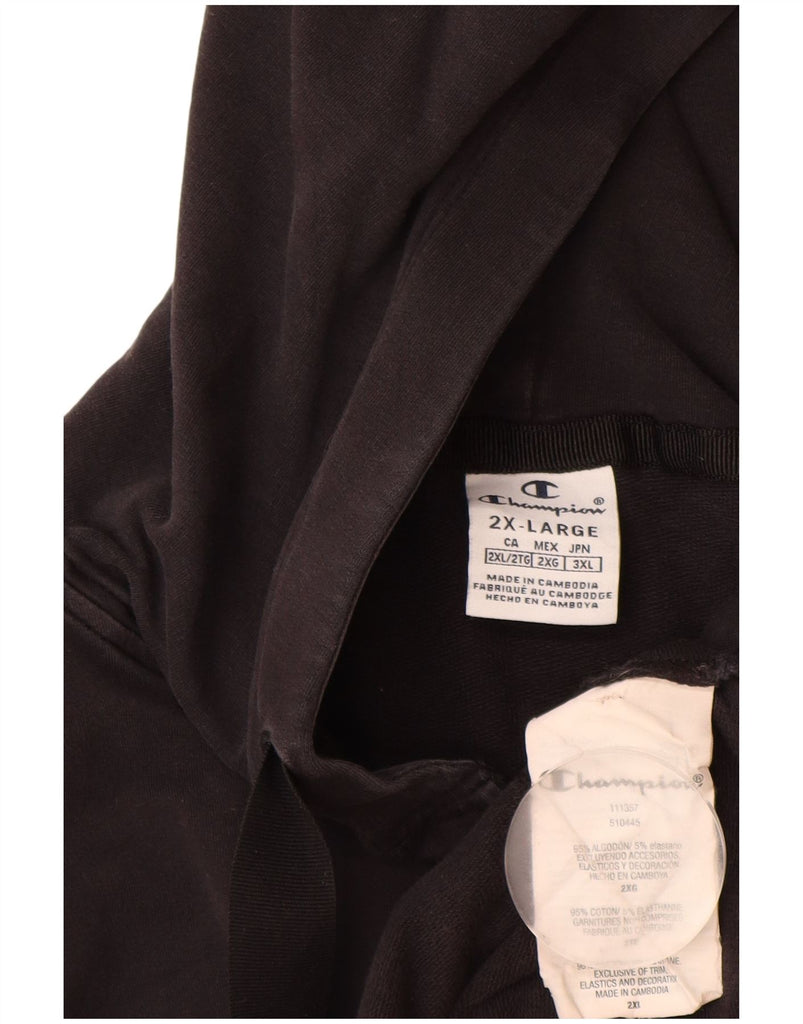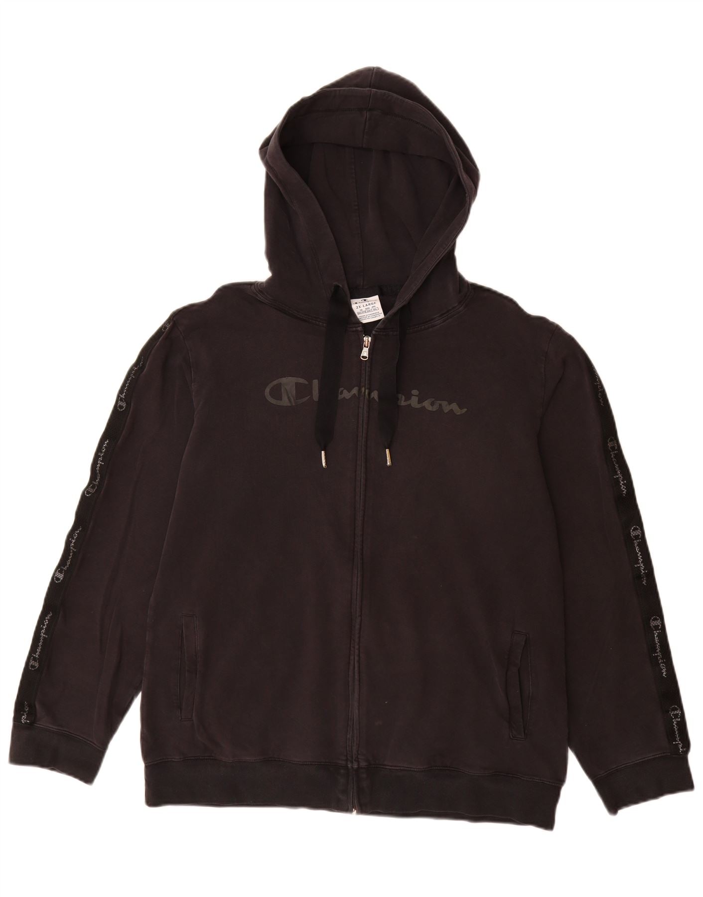 CHAMPION Boys Graphic Zip Hoodie Sweater 15-16 Years 2XL Black Cotton