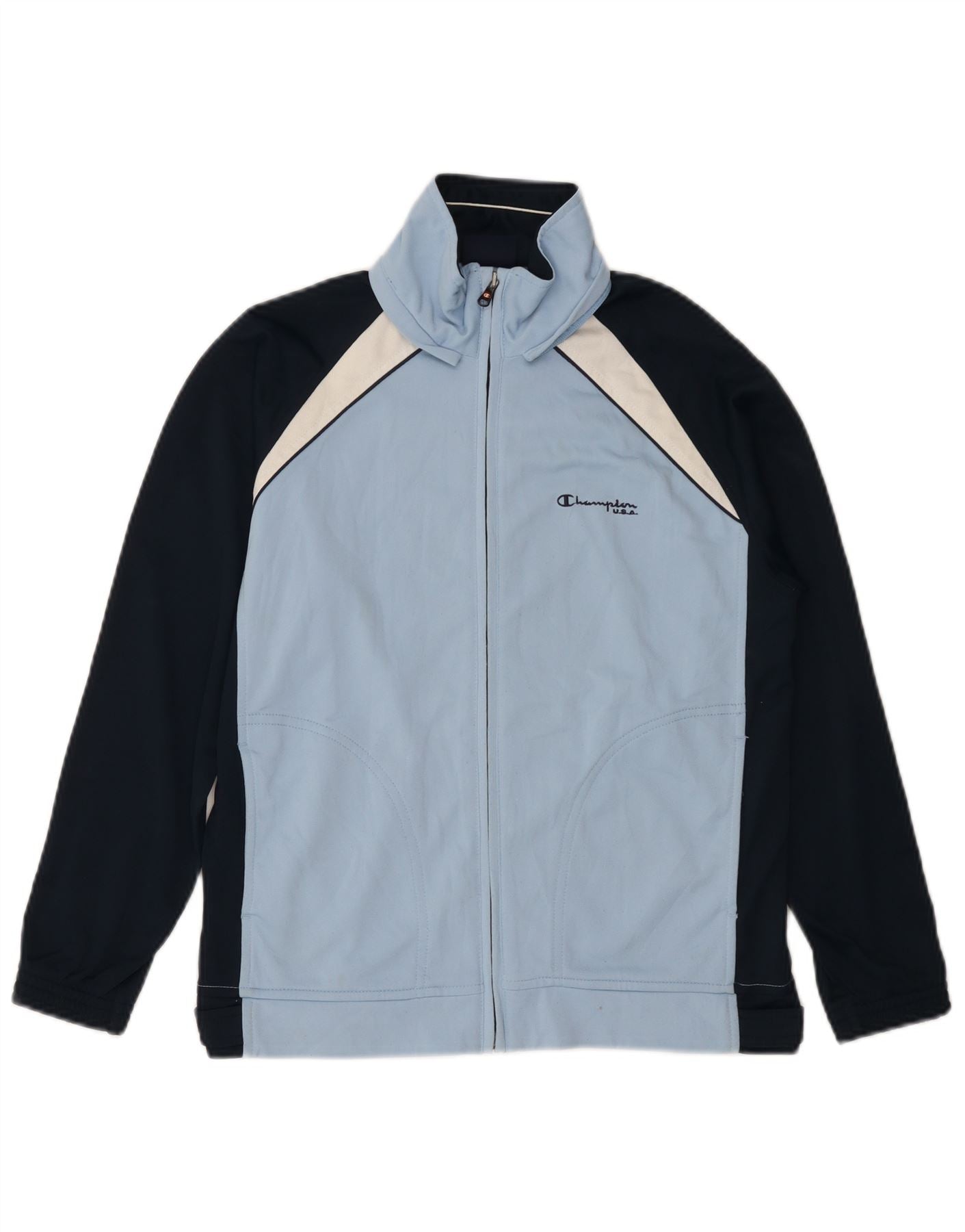 CHAMPION Boys Tracksuit Top Jacket 11-12 Years Blue Colourblock Polyester