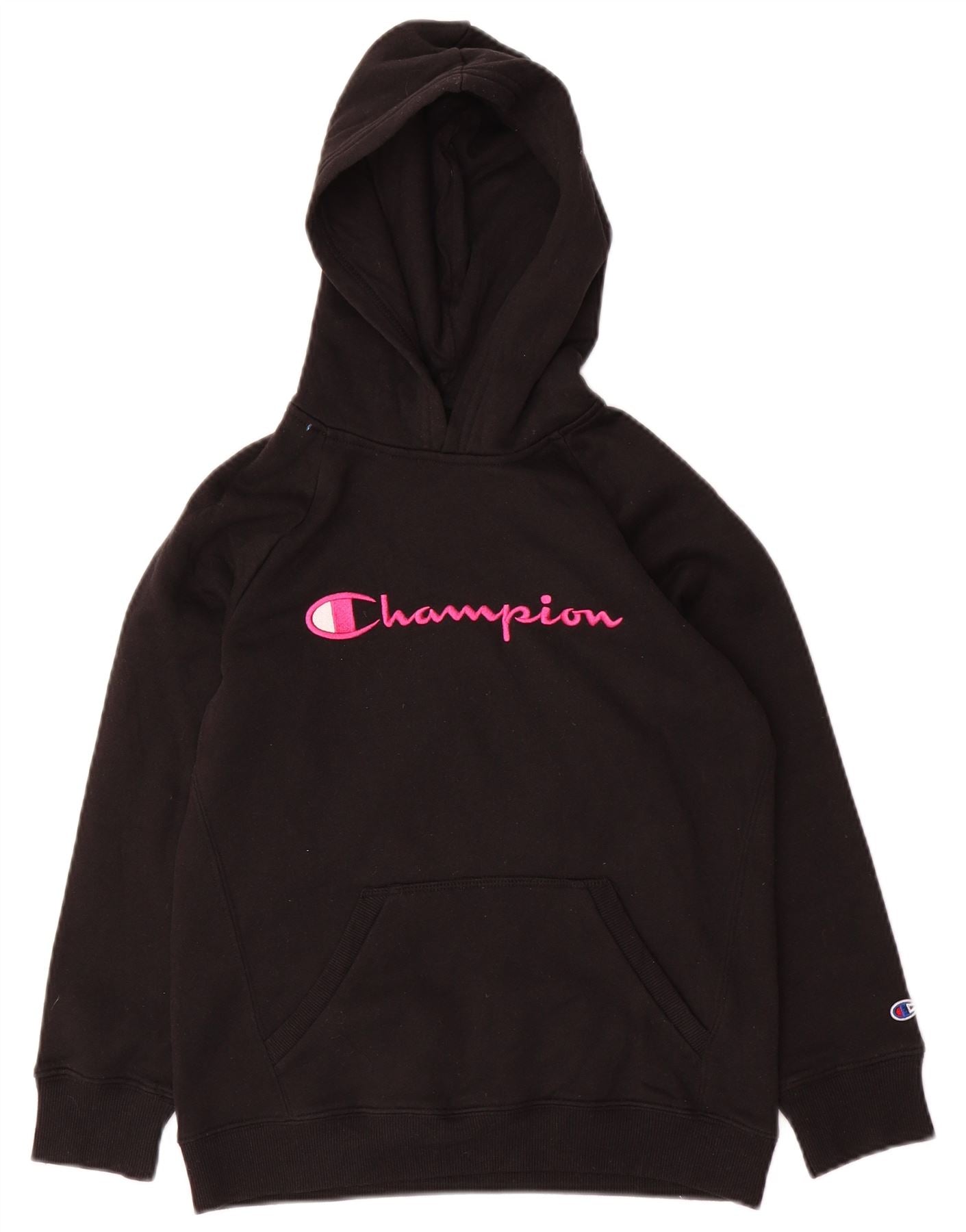 CHAMPION Girls Graphic Hoodie Jumper 11-12 Years Large Black