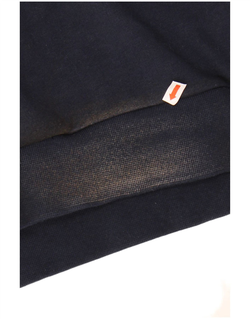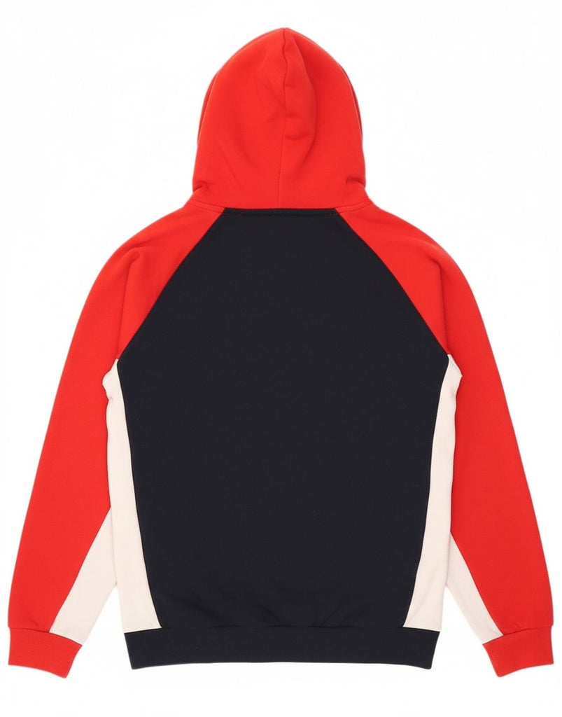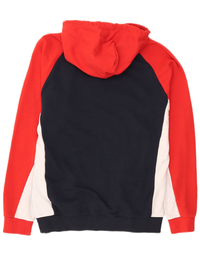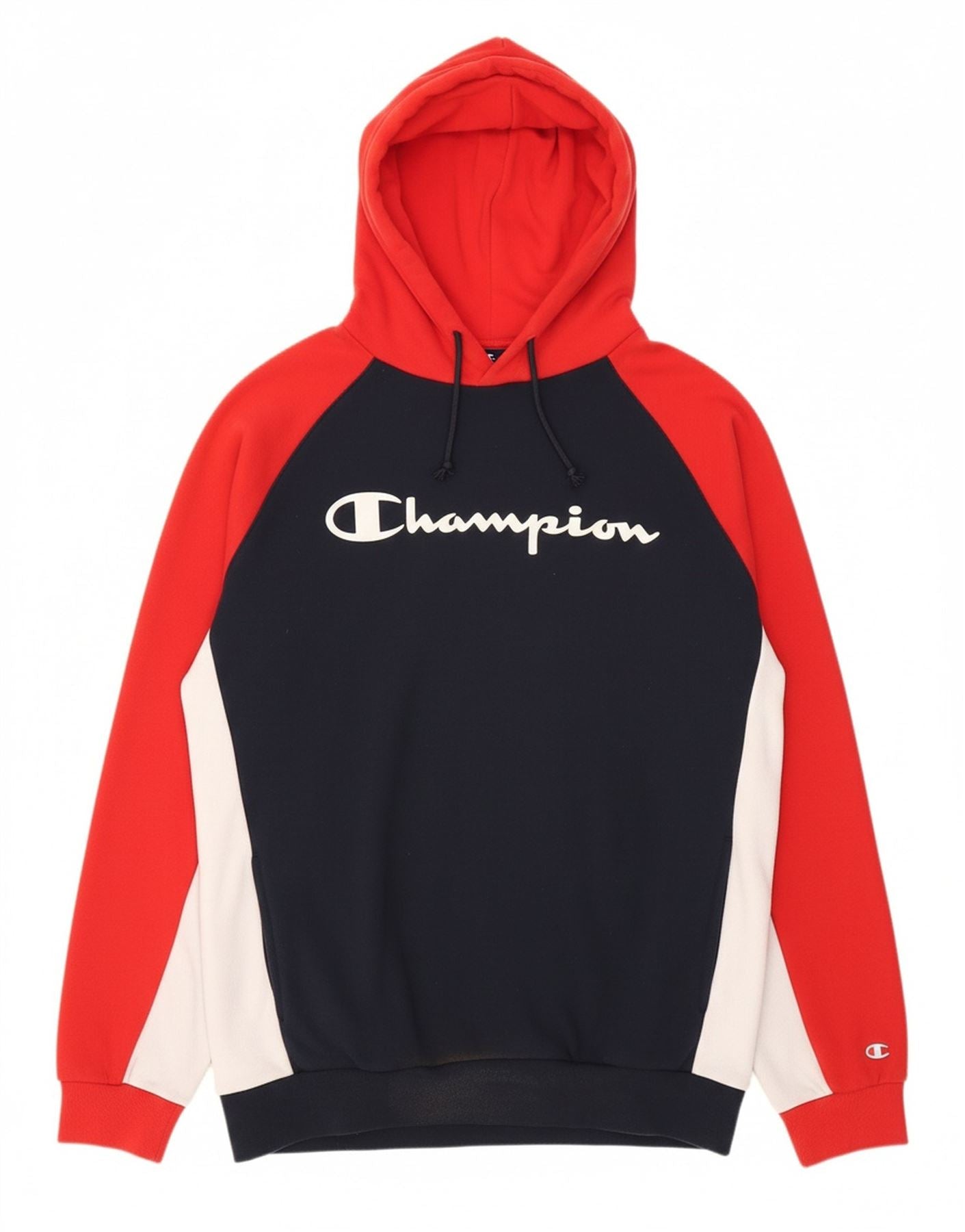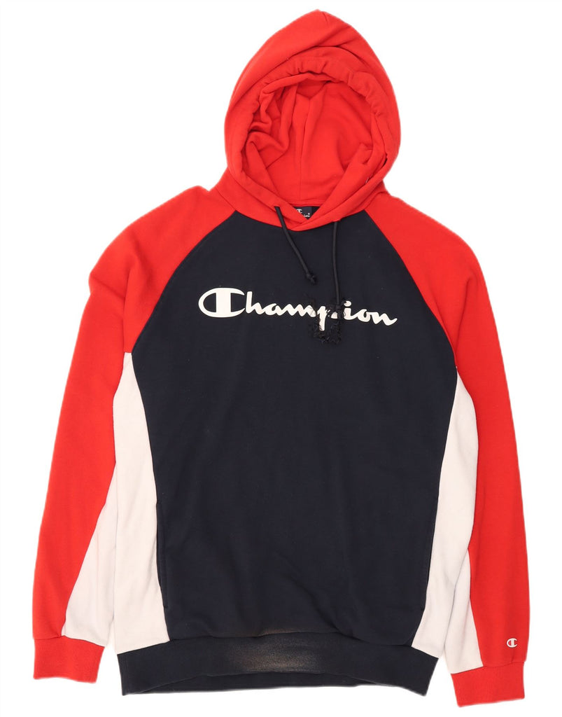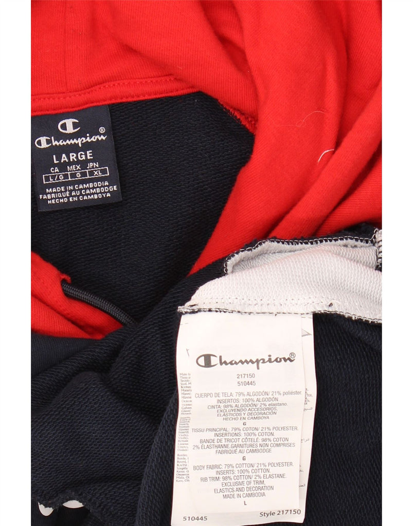 CHAMPION Mens Graphic Hoodie Jumper Large Navy Blue Colourblock Cotton