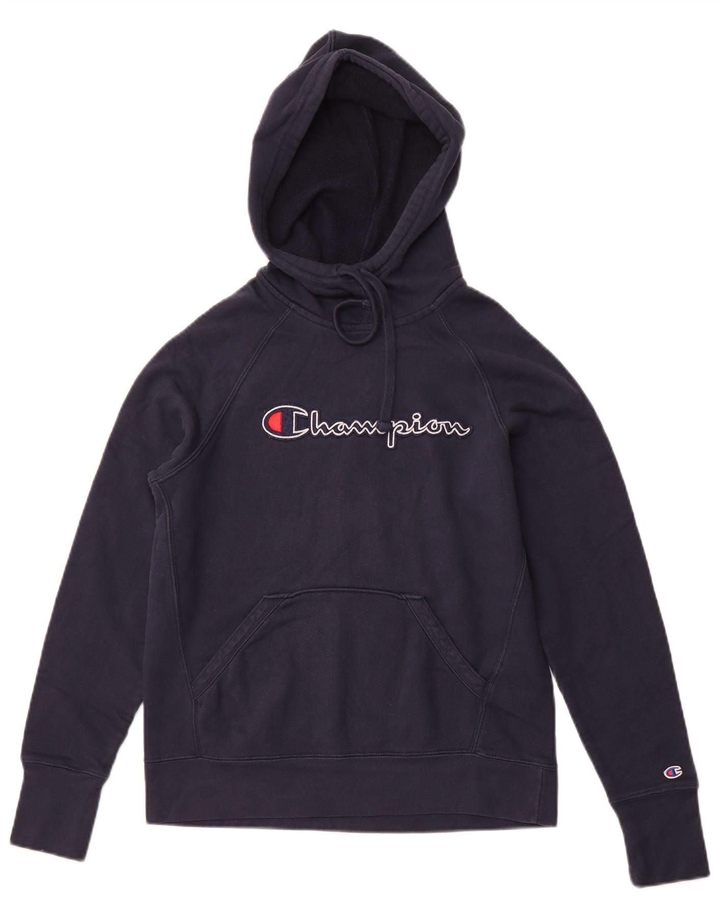 CHAMPION Mens Graphic Hoodie Jumper Small Navy Blue Cotton