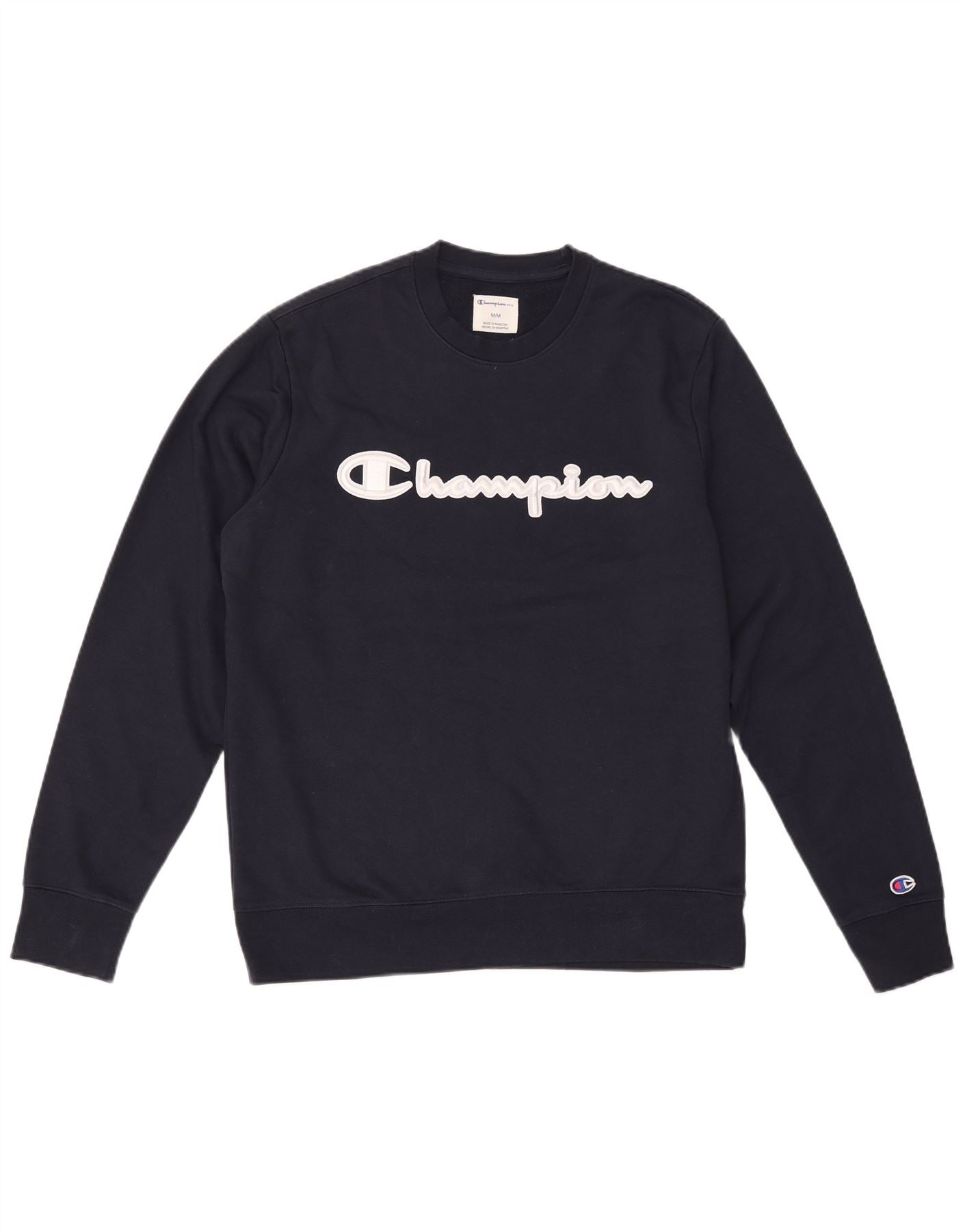 Home > Vintage Champion Clothing > Men's > Sweatshirts > CHAMPION Mens Graphic Sweatshirt Jumper Medium Navy Blue Cotton