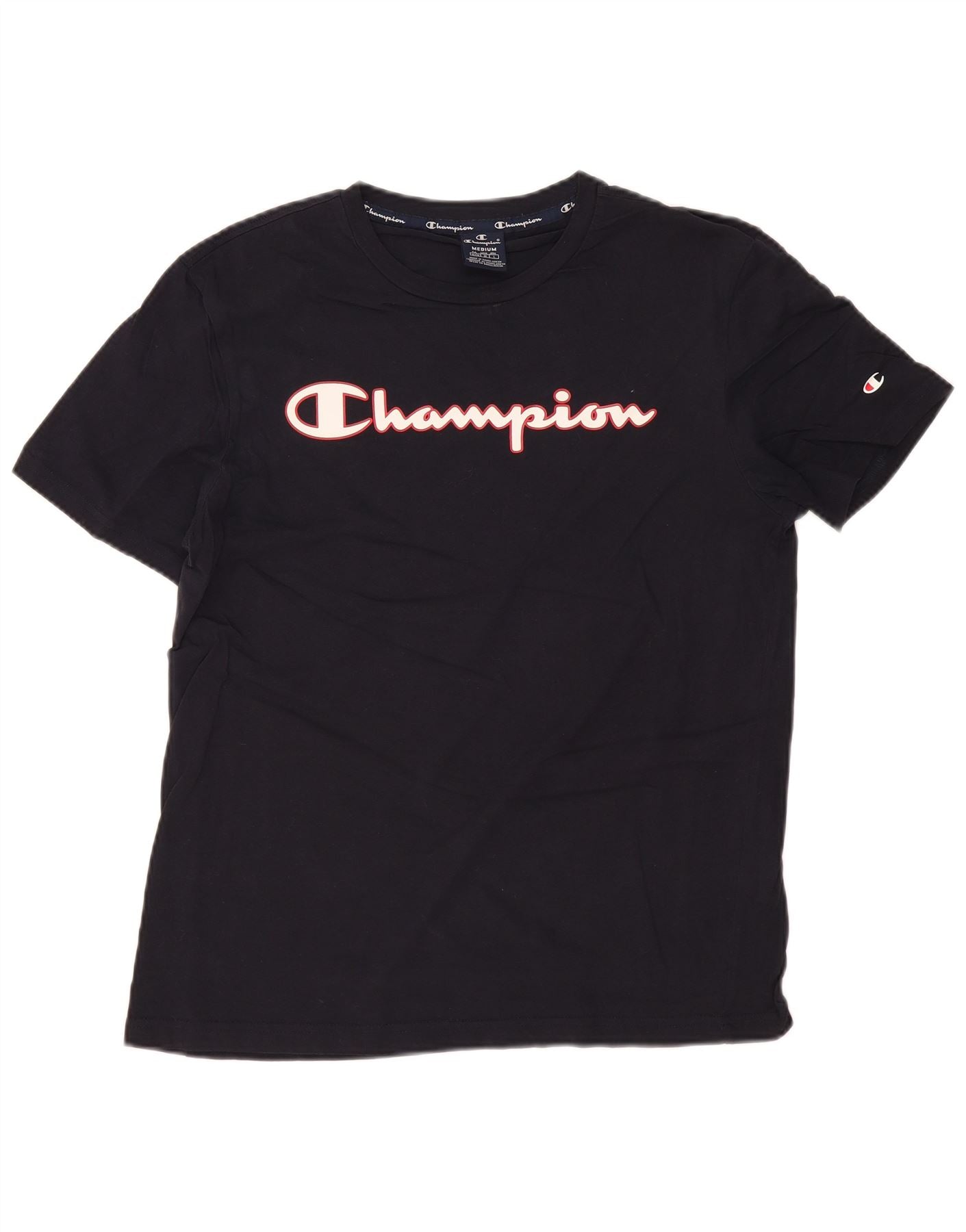 CHAMPION Mens Graphic T-Shirt Top Medium Navy Blue Cotton