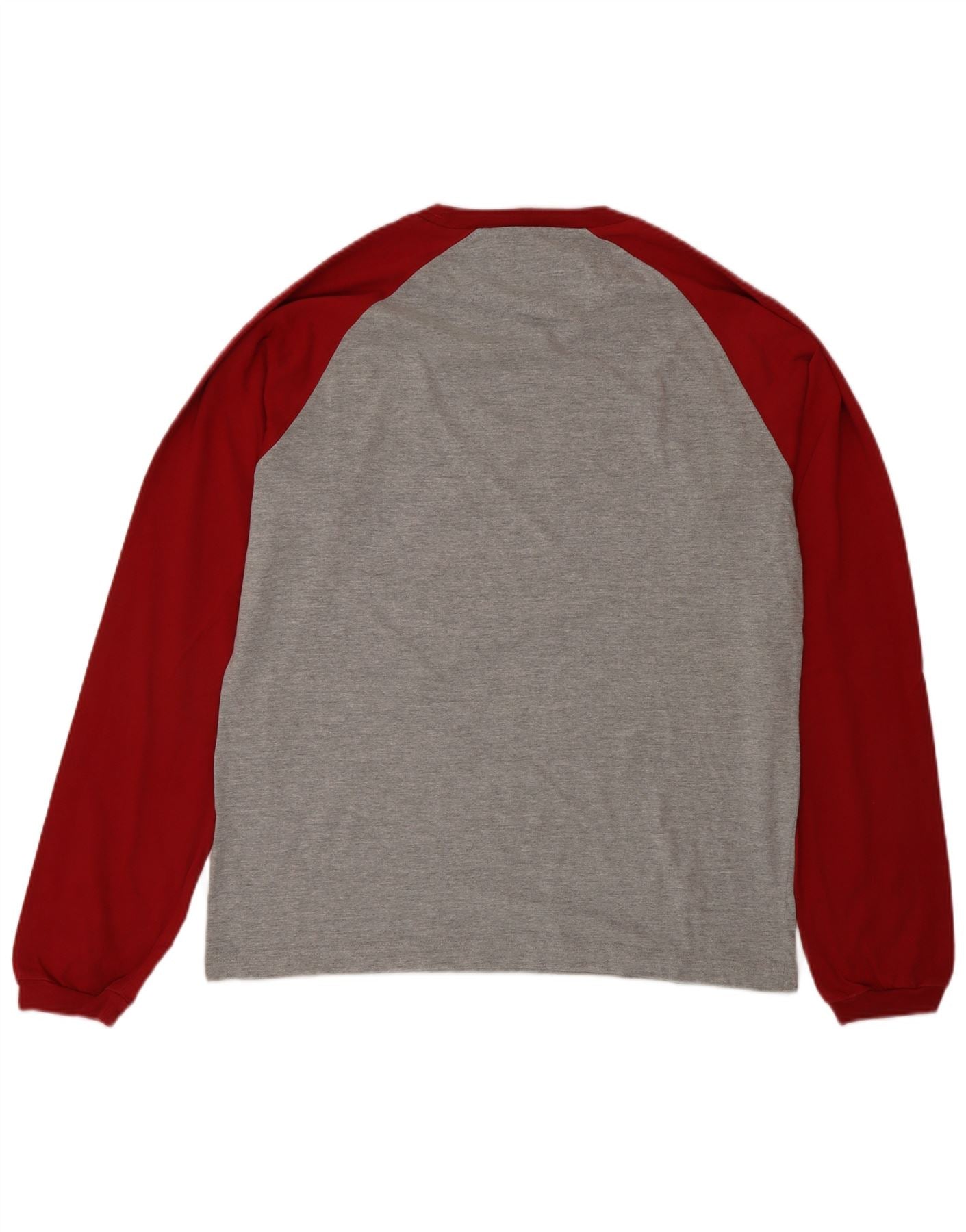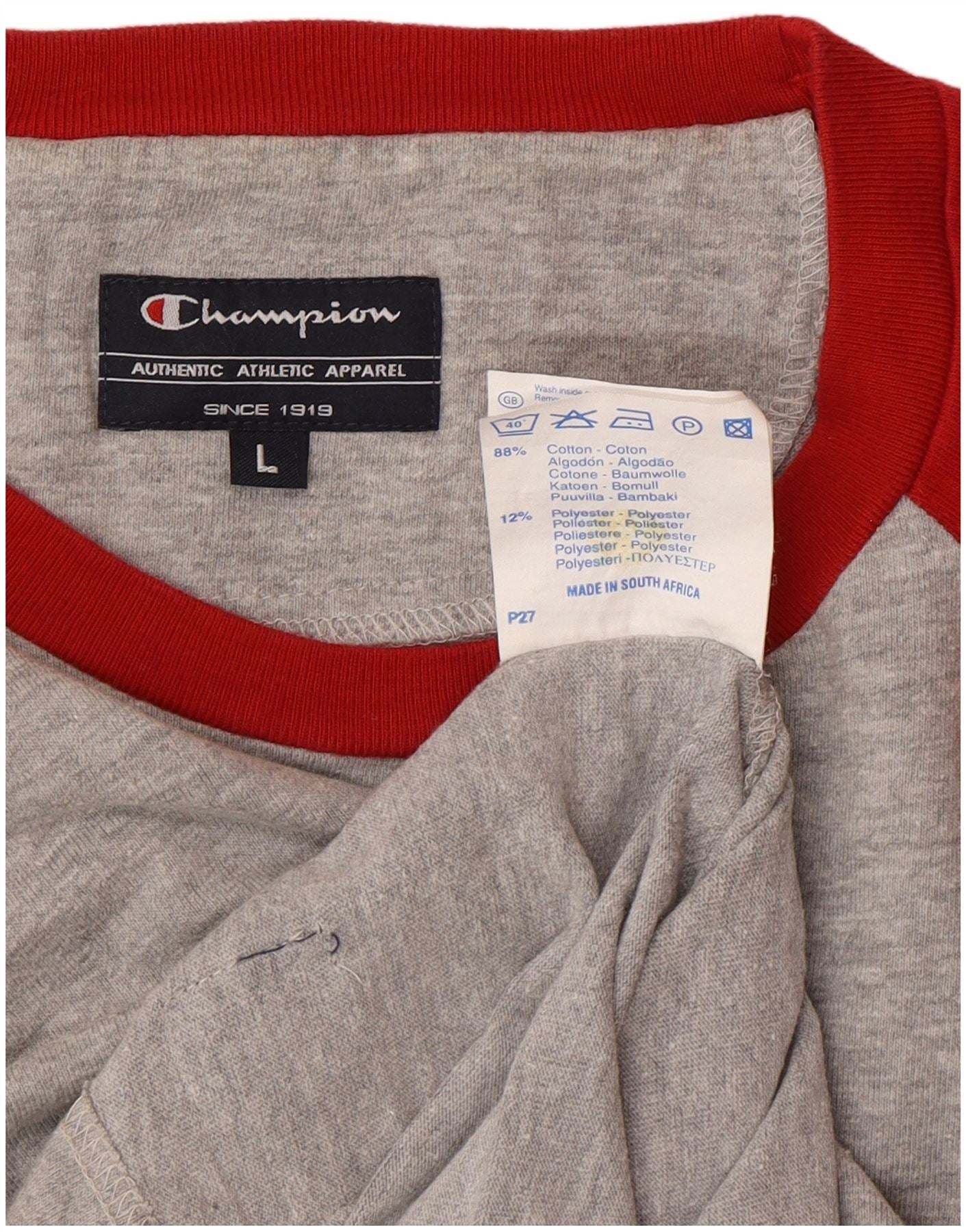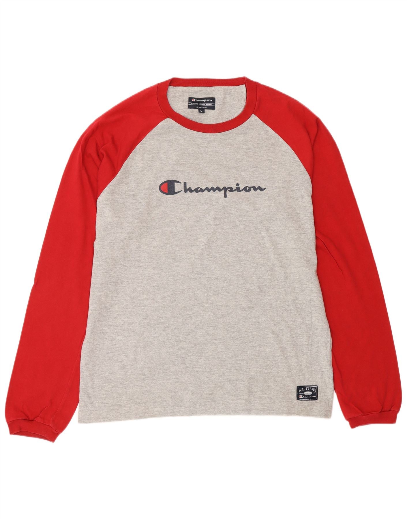 CHAMPION Mens Graphic Top Long Sleeve Large Grey Colourblock Cotton