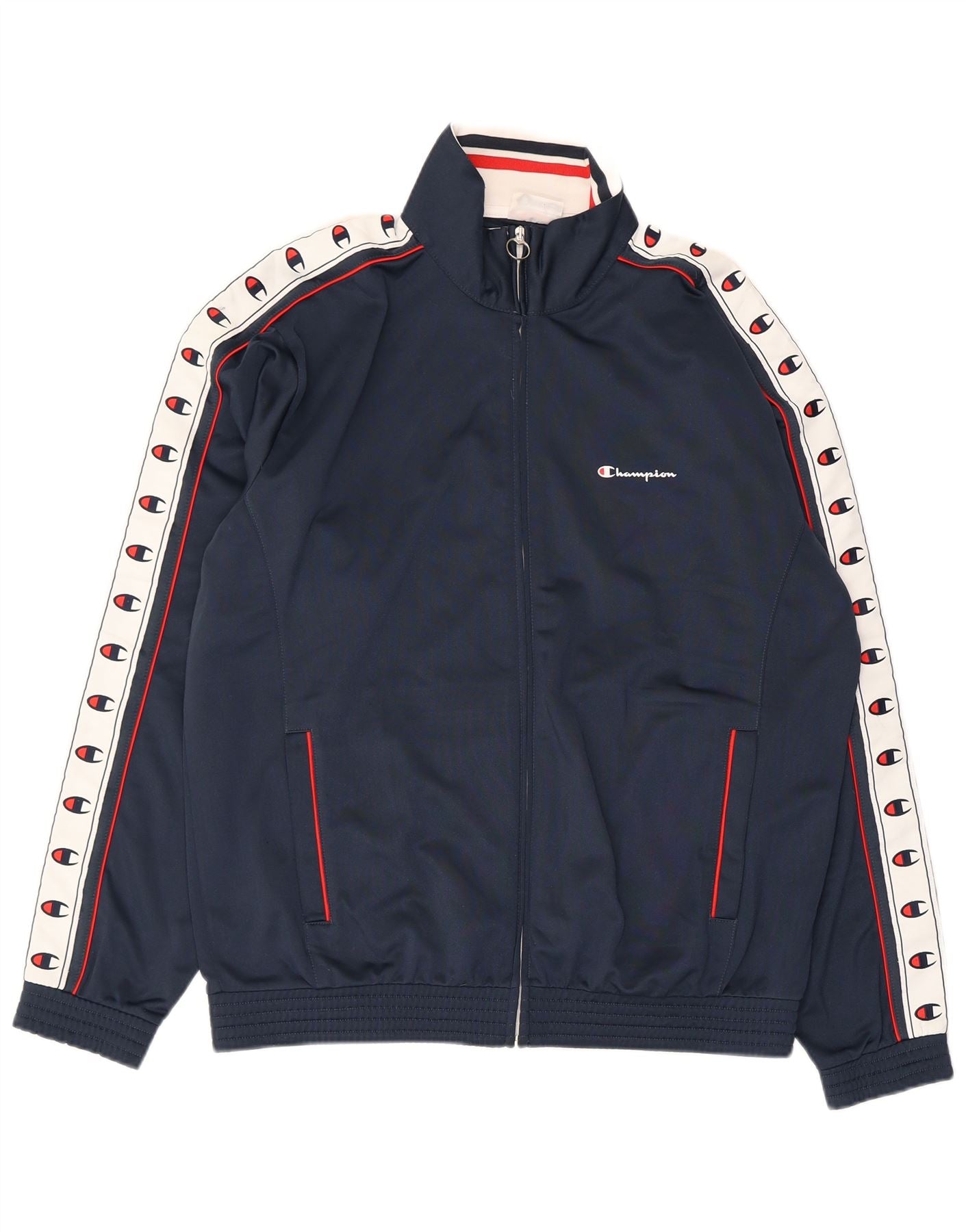 CHAMPION Mens Graphic Tracksuit Top Jacket Large Navy Blue Colourblock