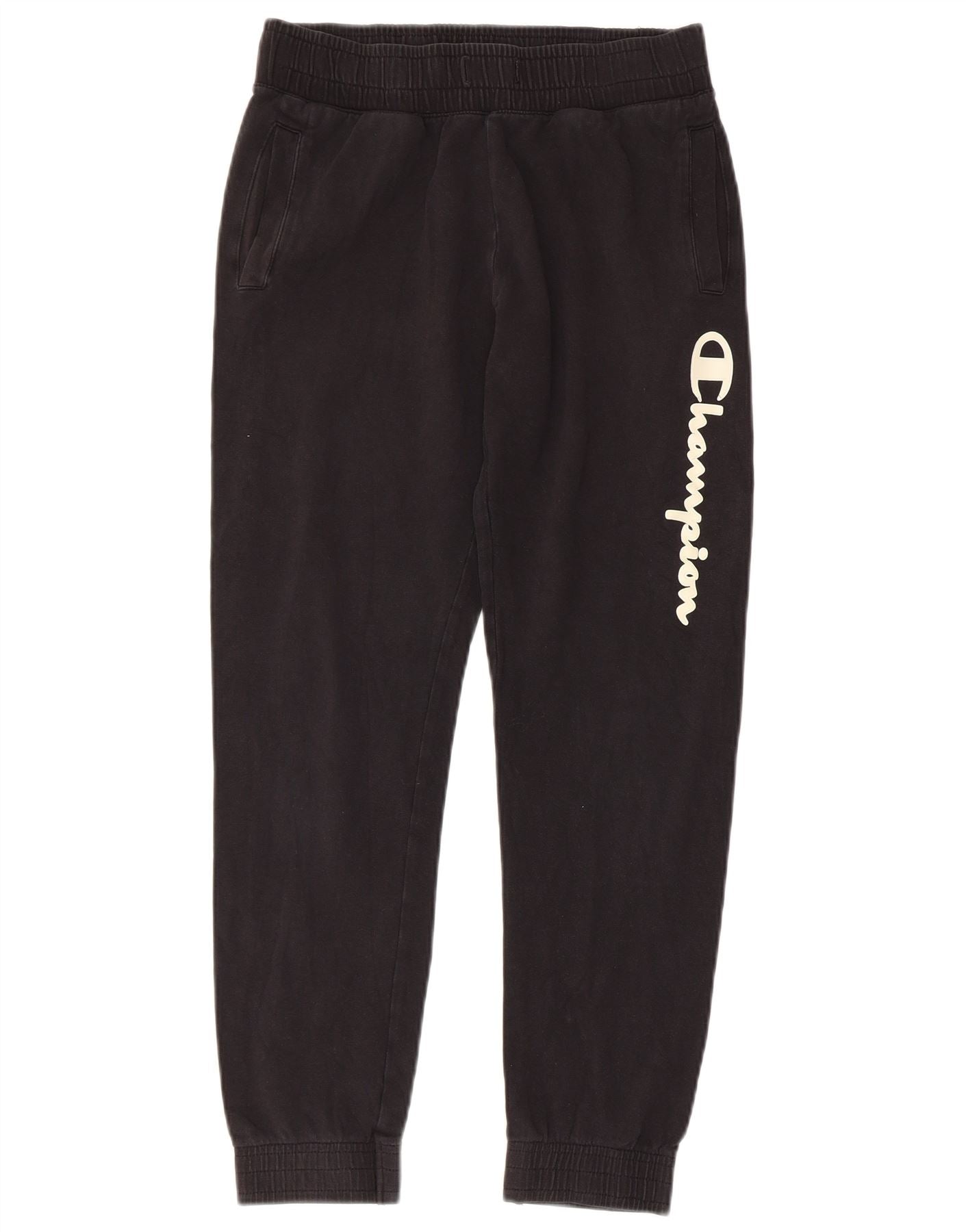 CHAMPION Mens Graphic Tracksuit Trousers Joggers Small Black Cotton