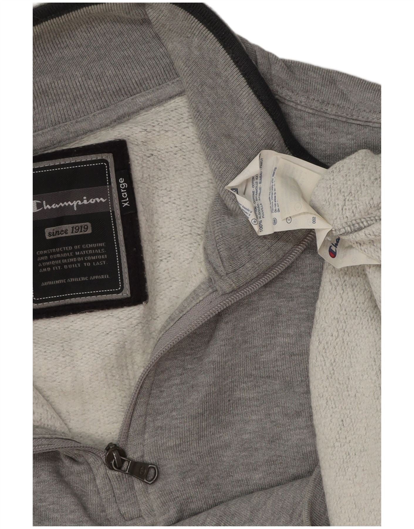CHAMPION Mens Graphic Zip Neck Sweatshirt Jumper XL Grey Cotton