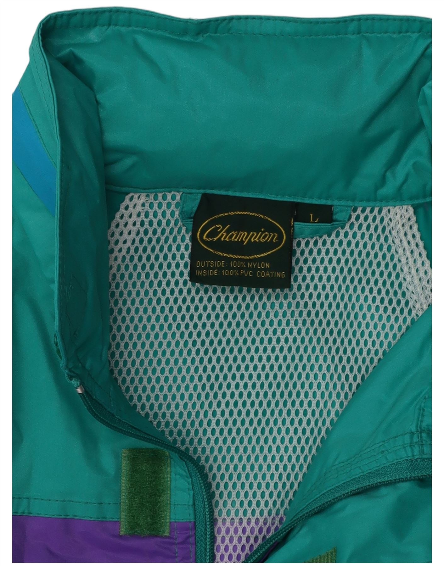 CHAMPION Mens Hooded Rain Jacket UK 40 Large Turquoise Colourblock Nylon