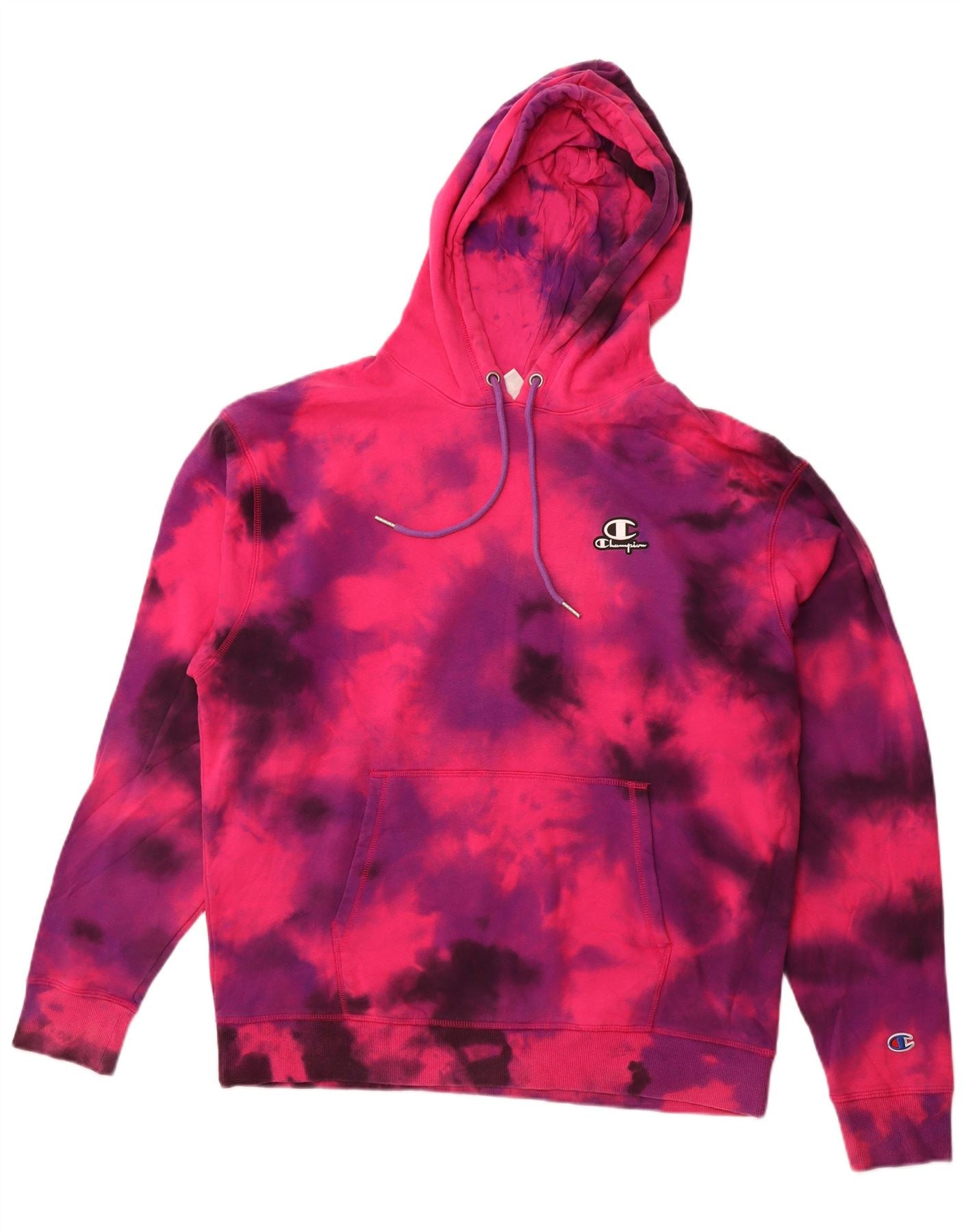 CHAMPION Mens Hoodie Jumper Large Multicoloured Tie Dye Cotton