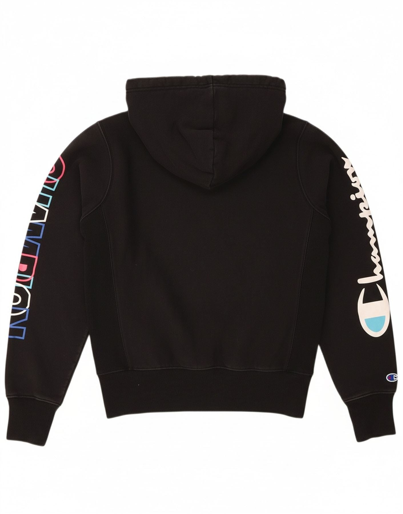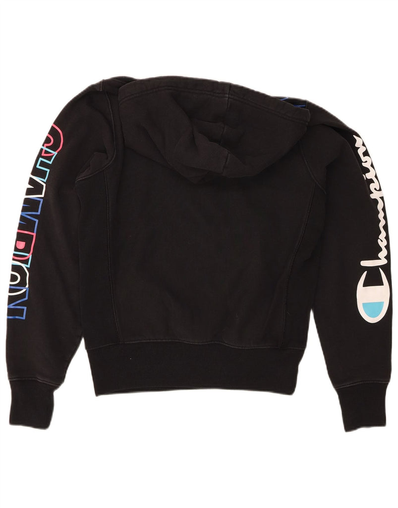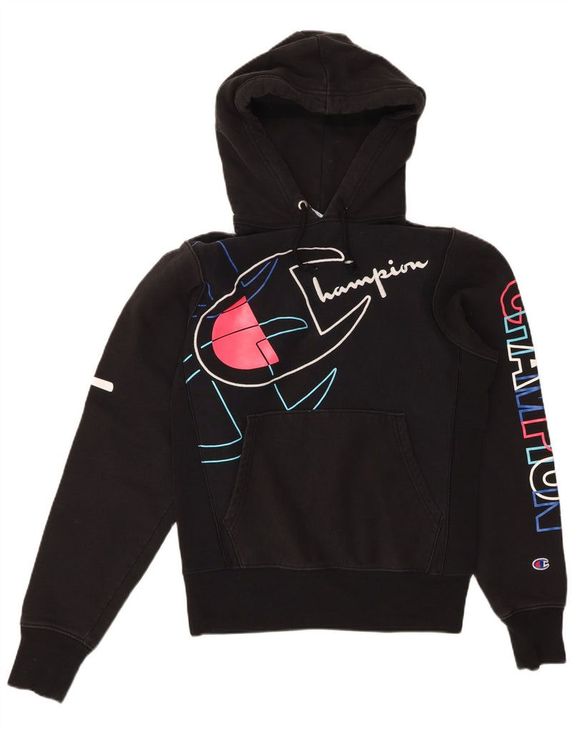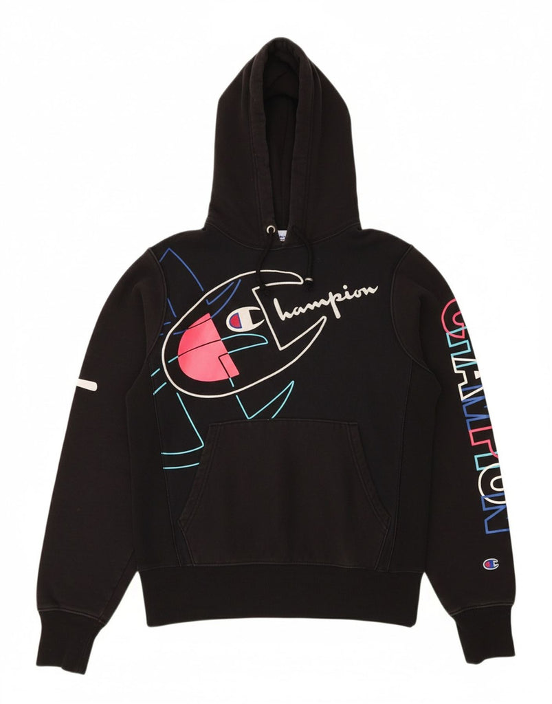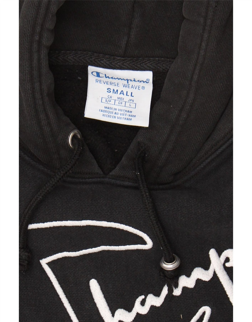 CHAMPION Mens Reverse Weave Graphic Hoodie Jumper Small Black Cotton