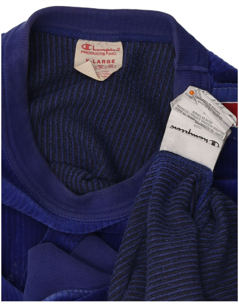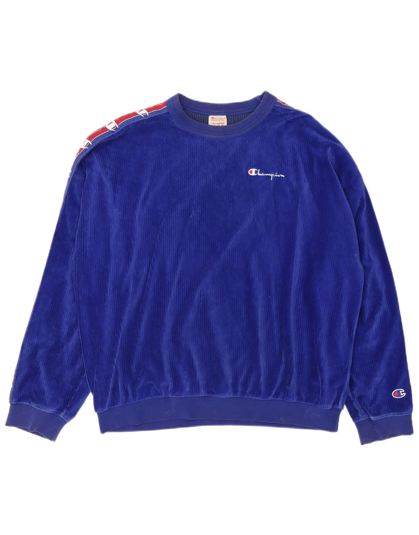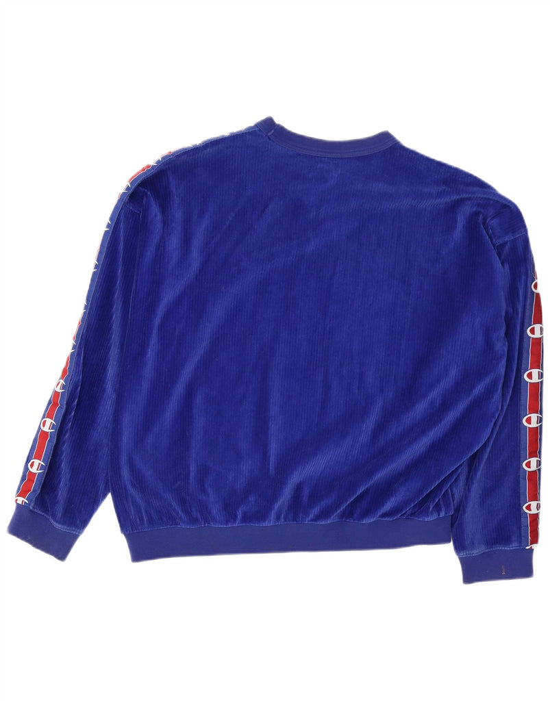 CHAMPION Mens Velvet Graphic Sweatshirt Jumper XL Blue Colourblock Cotton