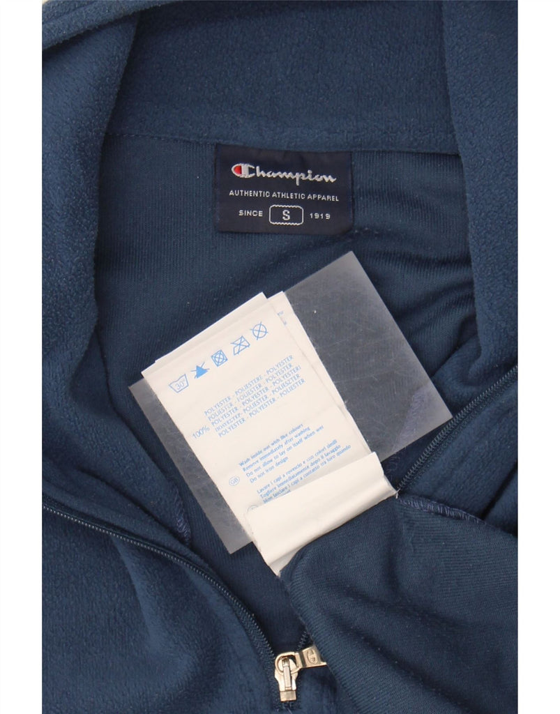 CHAMPION Mens Zip Neck Fleece Jumper Small Navy Blue Polyester