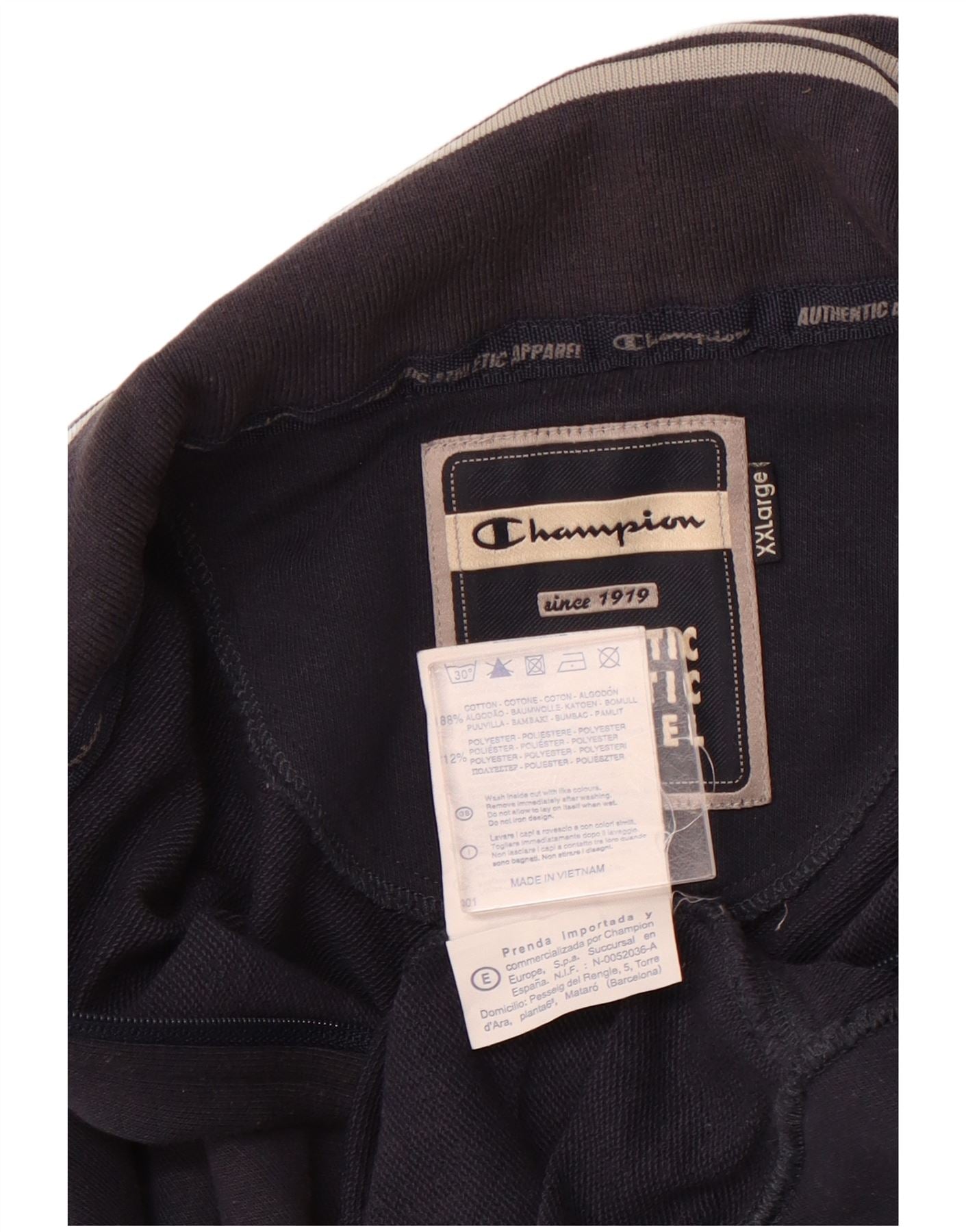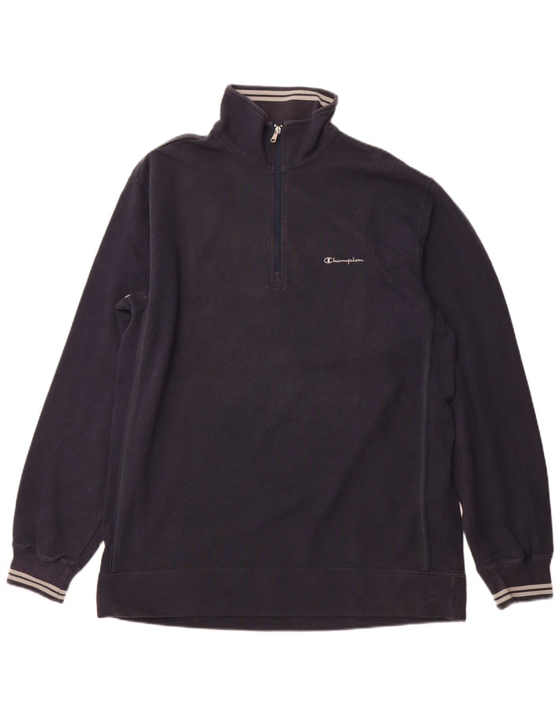 CHAMPION Mens Zip Neck Sweatshirt Jumper 2XL Navy Blue Cotton