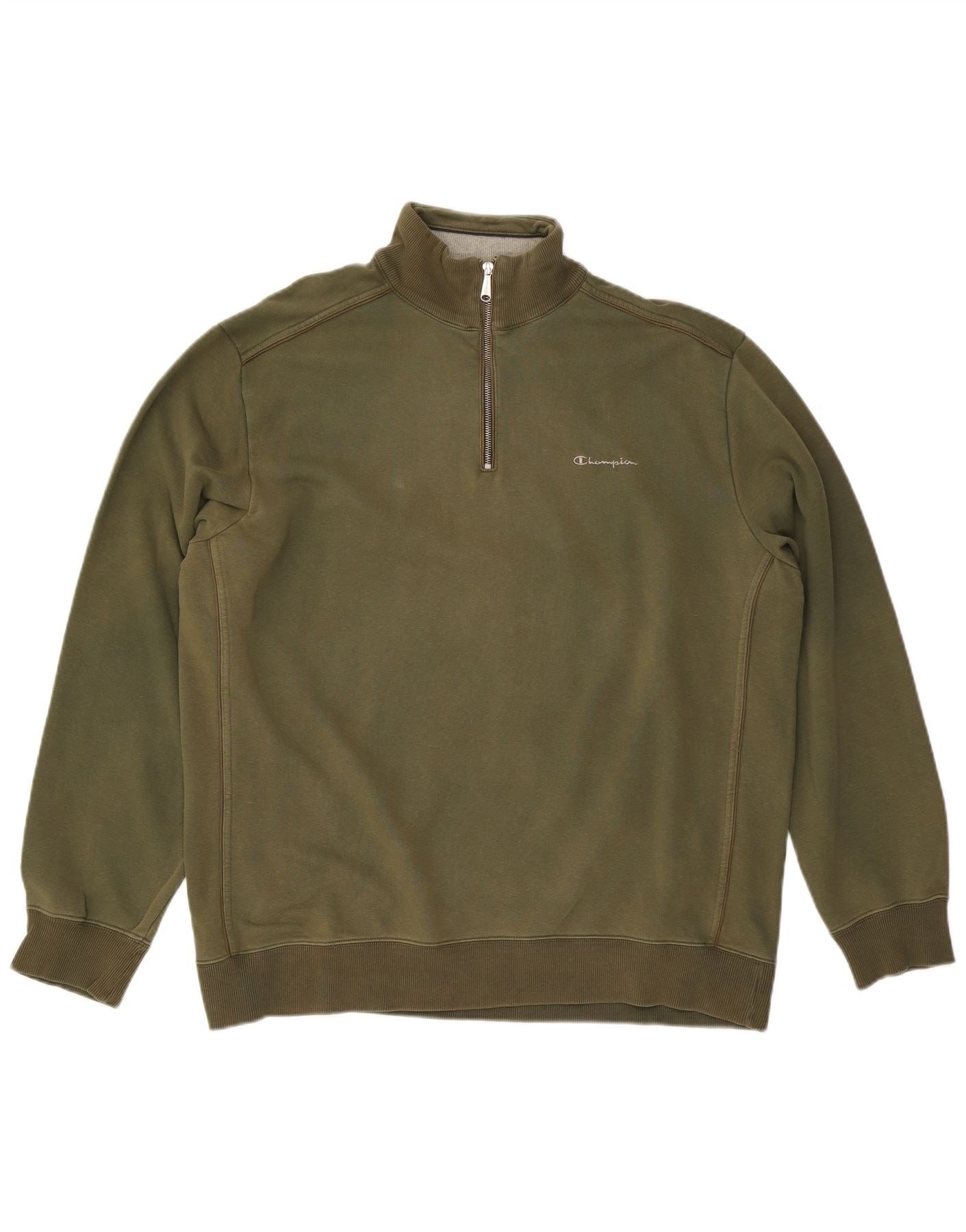 Home > Vintage Champion Clothing > Men's > Sweatshirts > CHAMPION Mens Zip Neck Sweatshirt Jumper 3XL Khaki Cotton