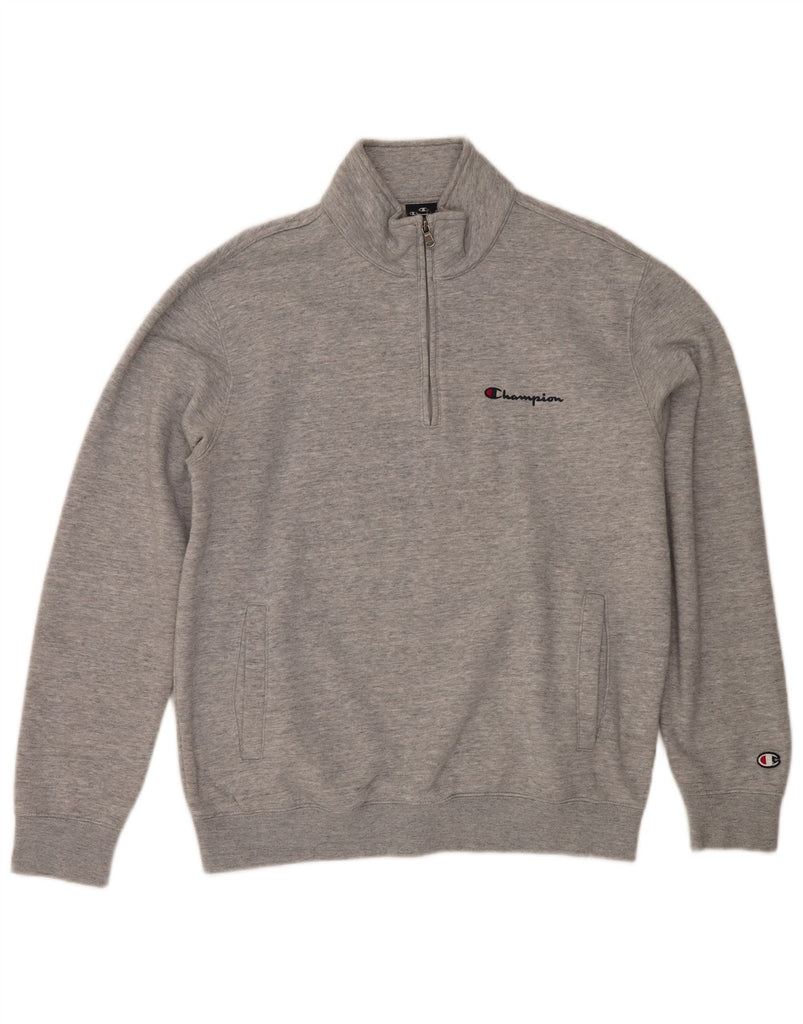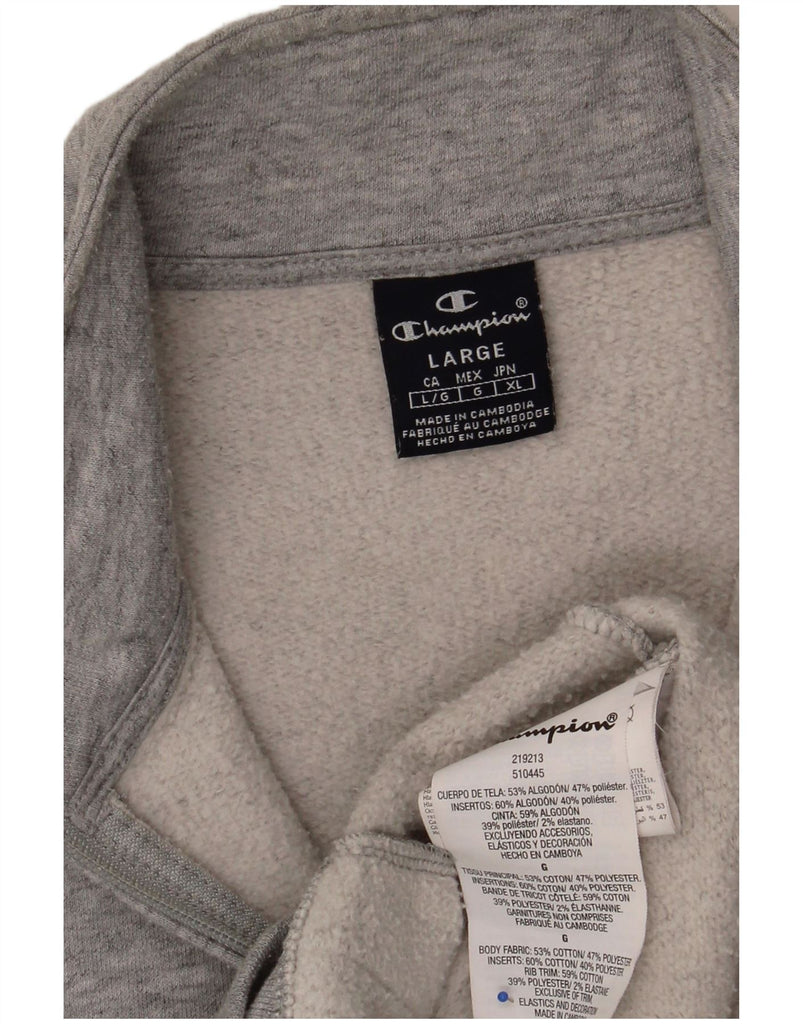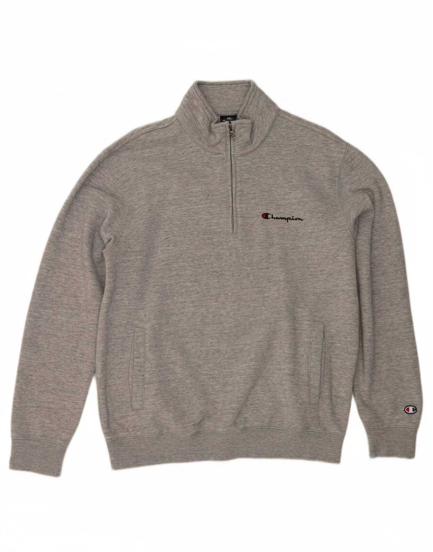 CHAMPION Mens Zip Neck Sweatshirt Jumper Large Grey Flecked Cotton
