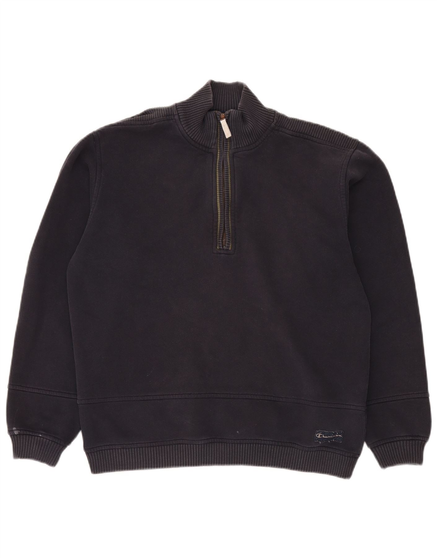Champion Mens Zip Neck Sweatshirt Jumper Large Navy Blue