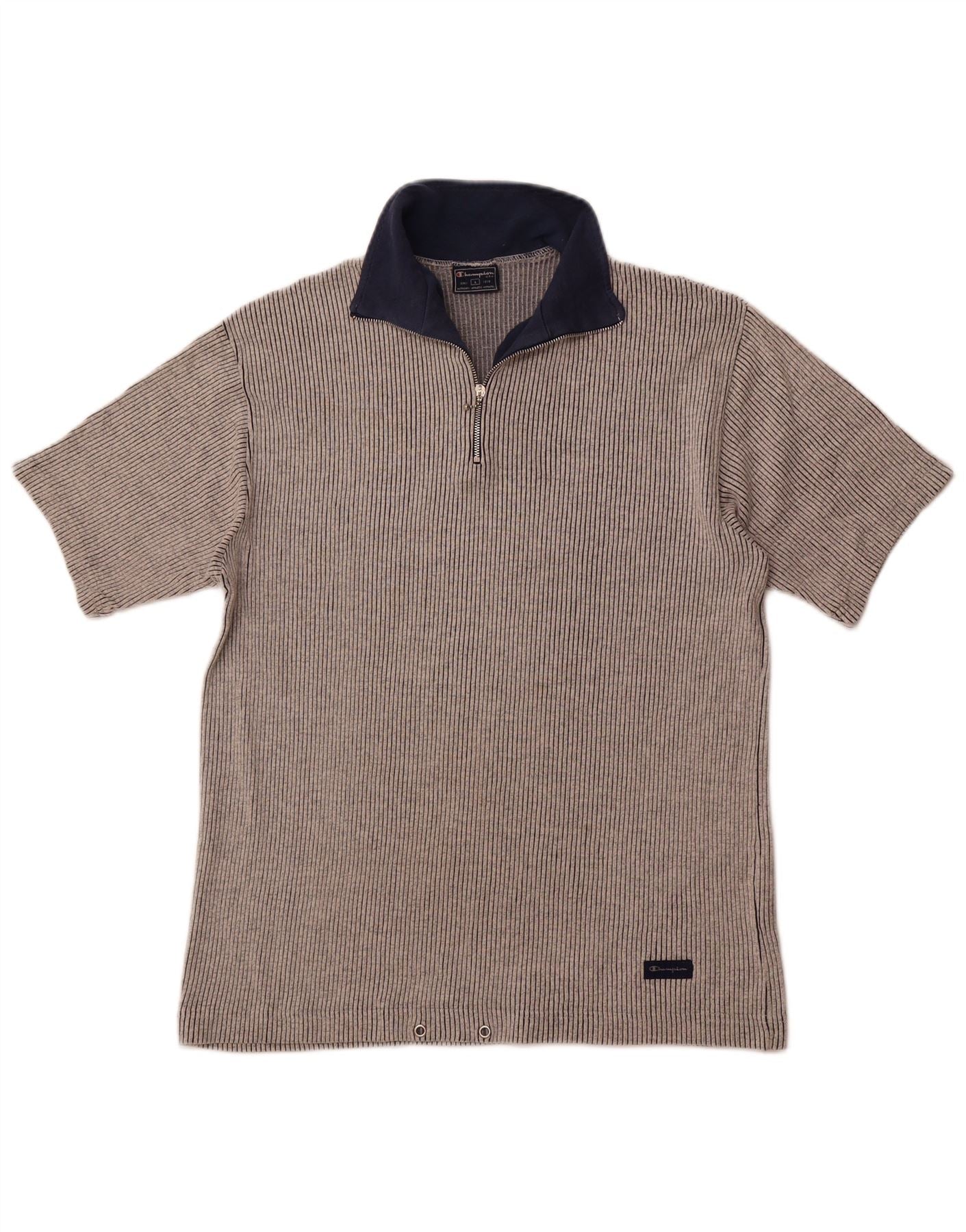 Home > Vintage Champion Clothing > Men's > T-Shirts > CHAMPION Mens Zip Neck T-Shirt Top Large Grey Pinstripe Cotton