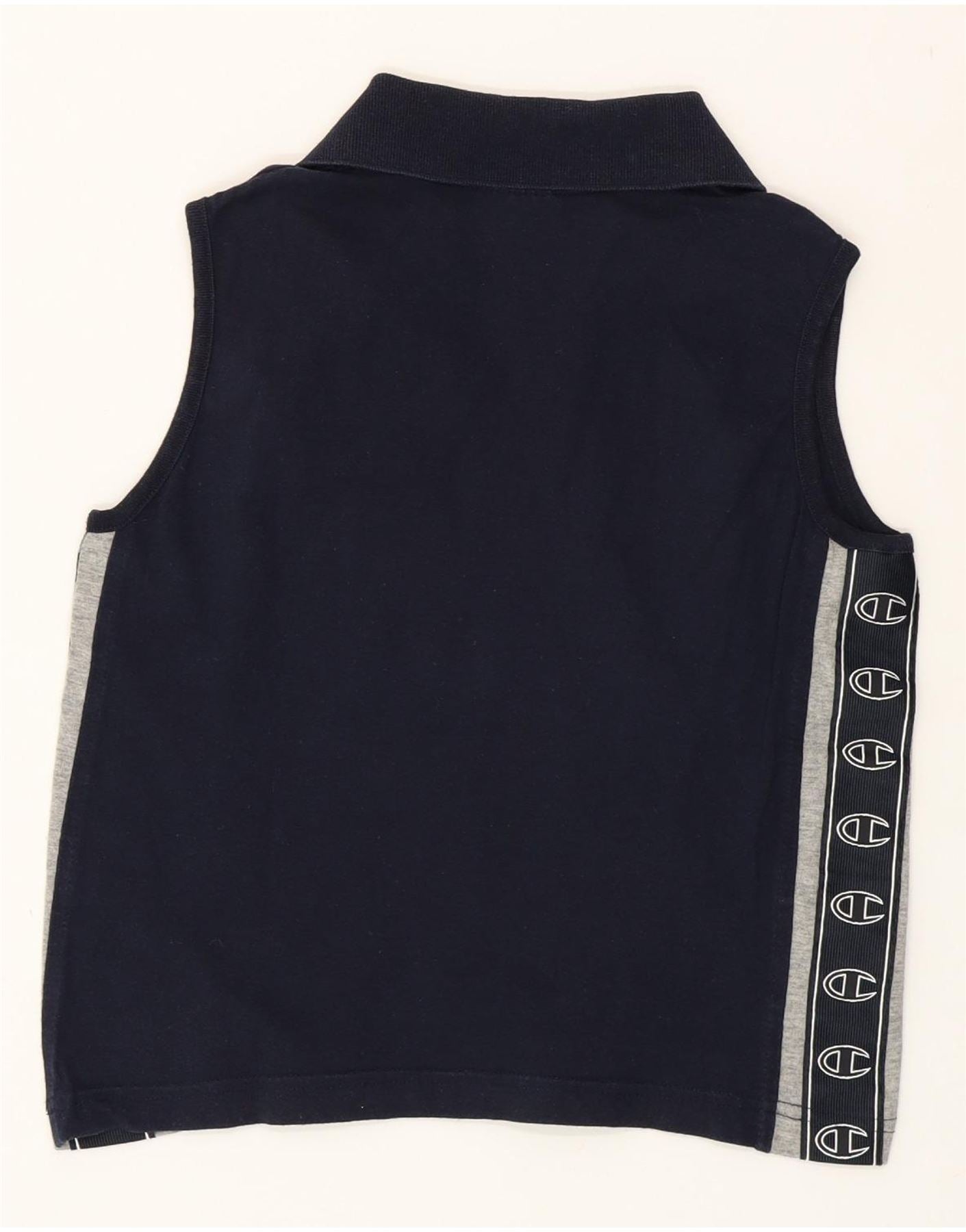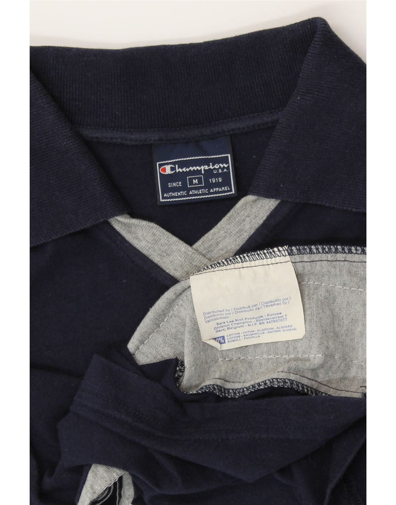 CHAMPION Womens Crop Graphic Polo Shirt UK 12 Medium Navy Blue Colourblock