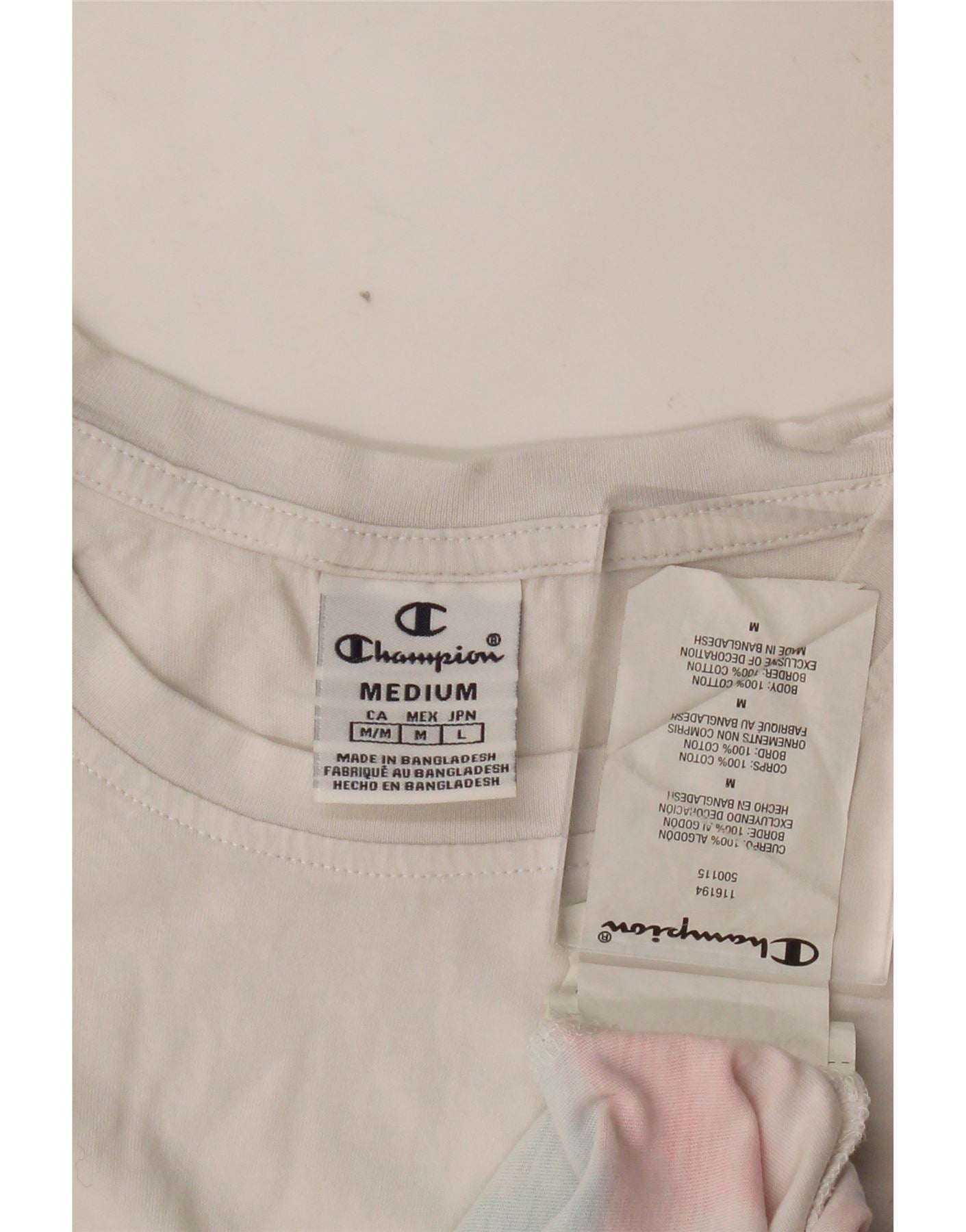CHAMPION Womens Crop T-Shirt Top UK 12 Medium White Tie Dye Cotton