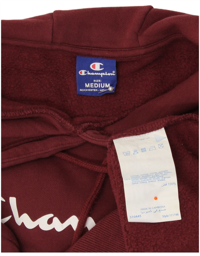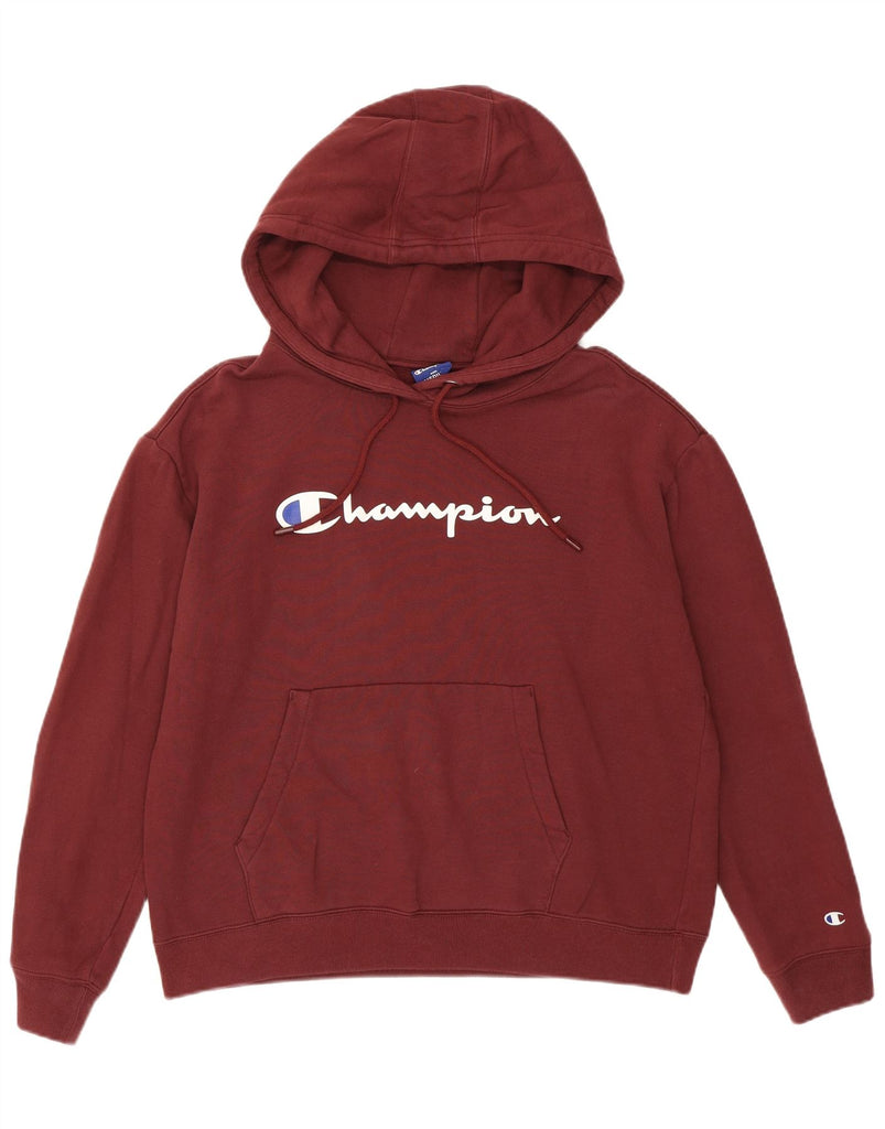 CHAMPION Womens Graphic Hoodie Jumper UK 14 Medium Burgundy Cotton