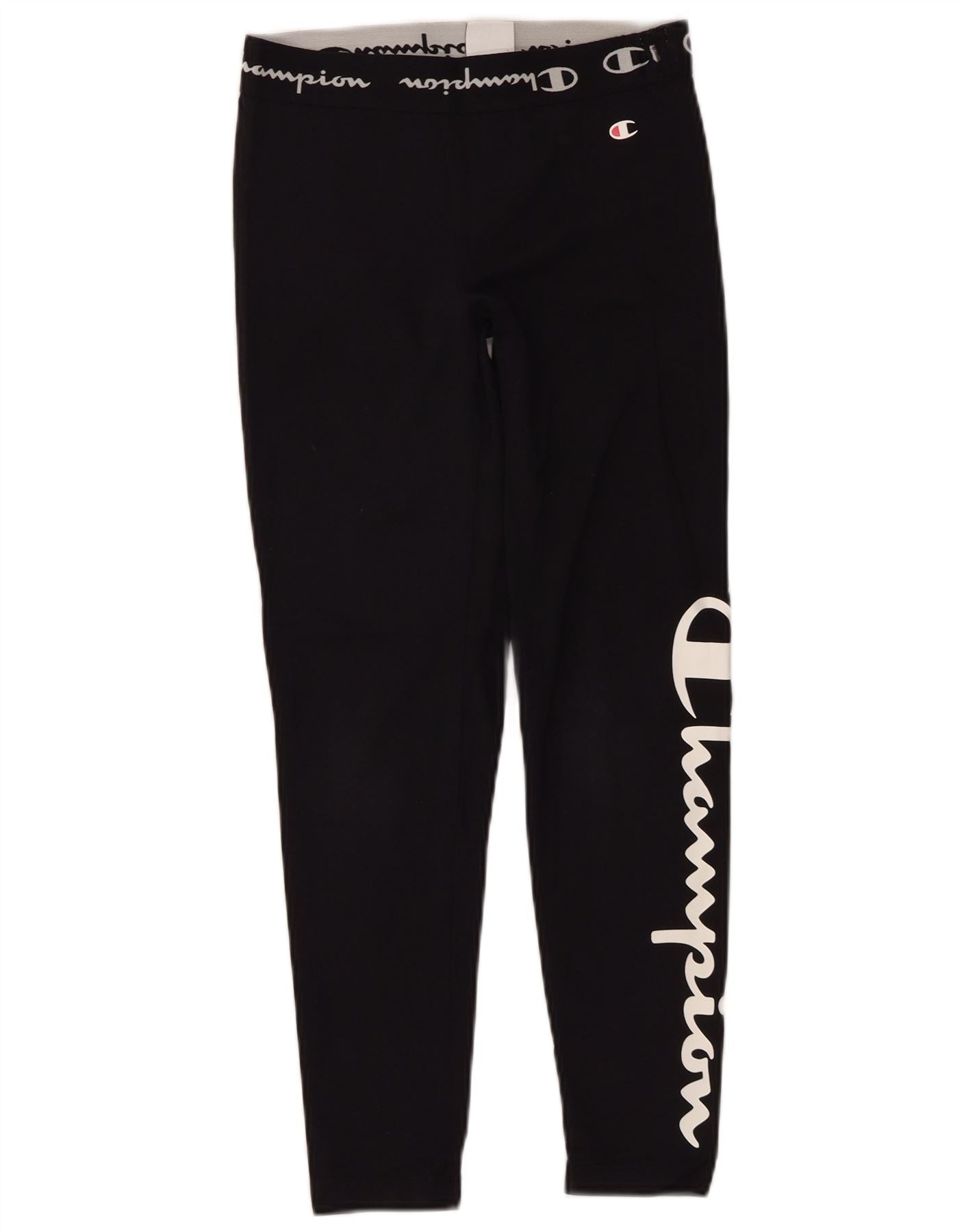 CHAMPION Womens Graphic Leggings UK 4 XS Black Cotton