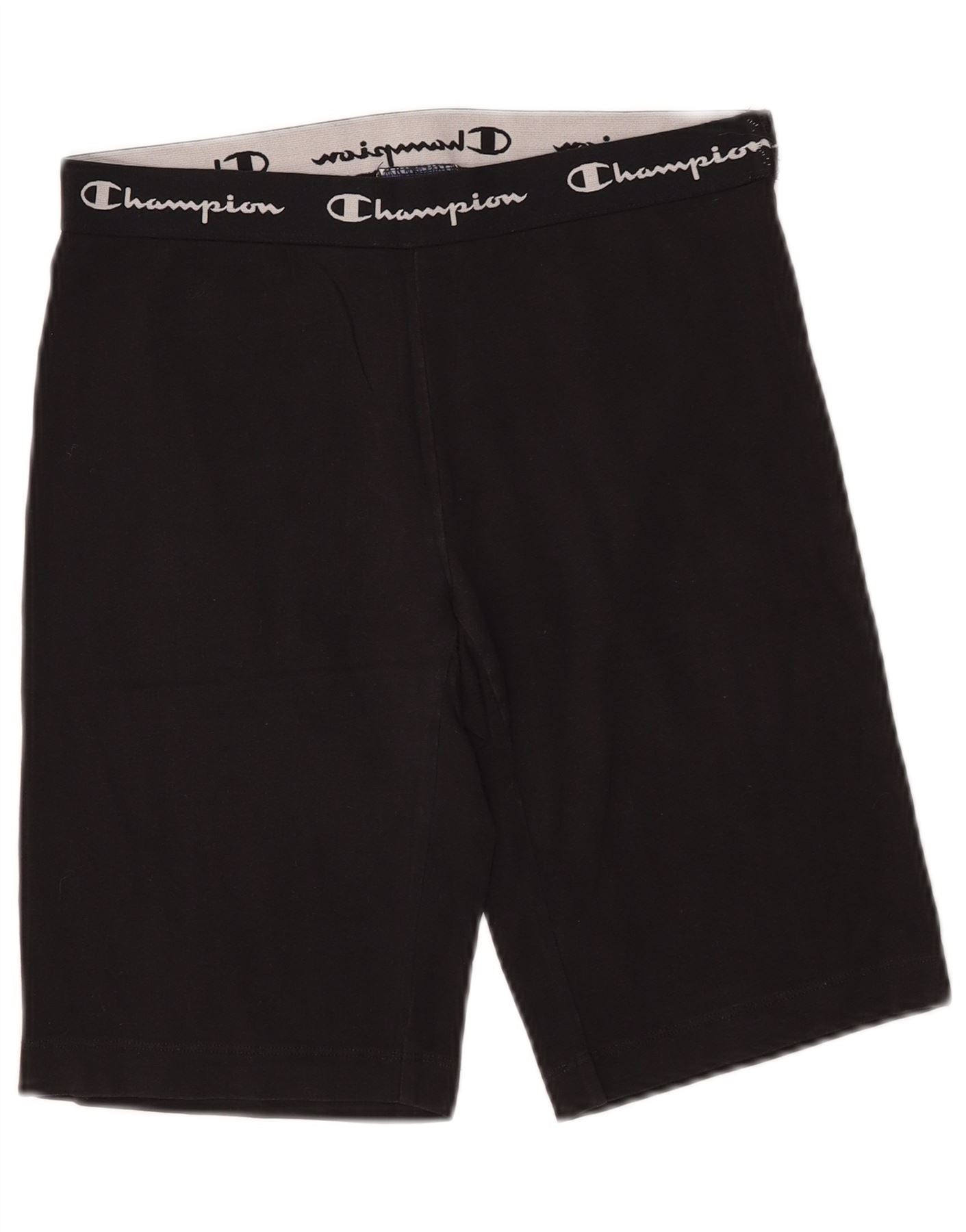CHAMPION Womens Graphic Sport Shorts UK 12 Medium Black Cotton