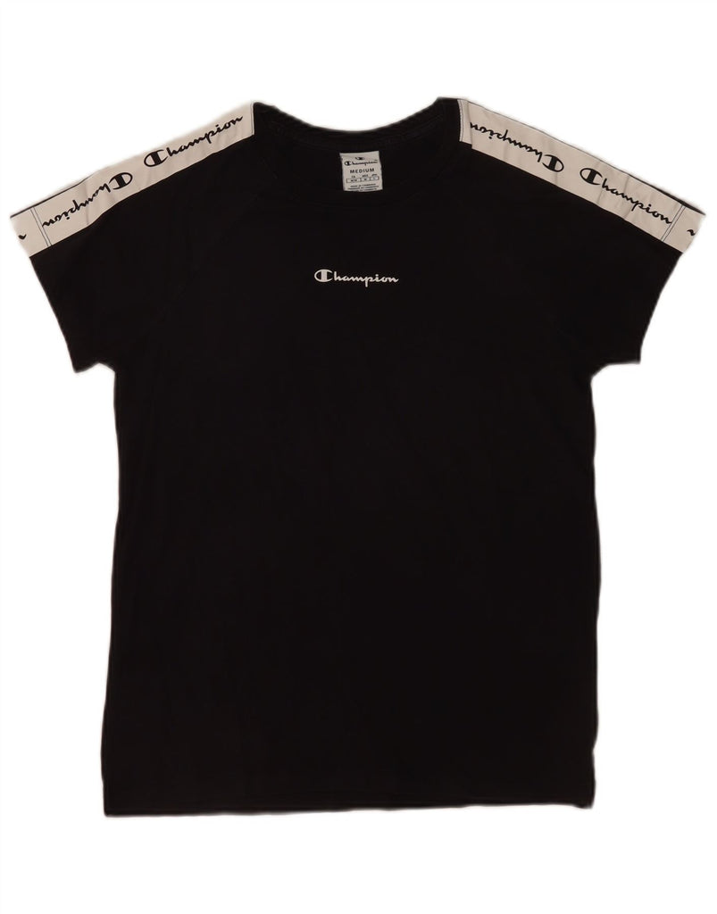 CHAMPION Womens Graphic T-Shirt Top UK 12 Medium Black Cotton