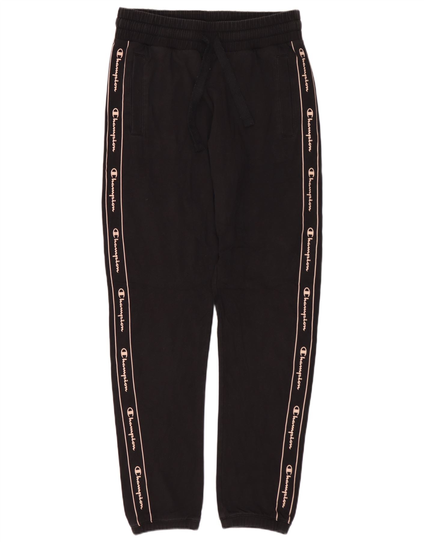 CHAMPION Womens Graphic Tracksuit Trousers Joggers UK 8 Small Black Cotton