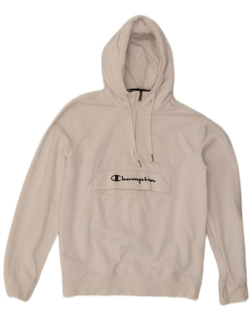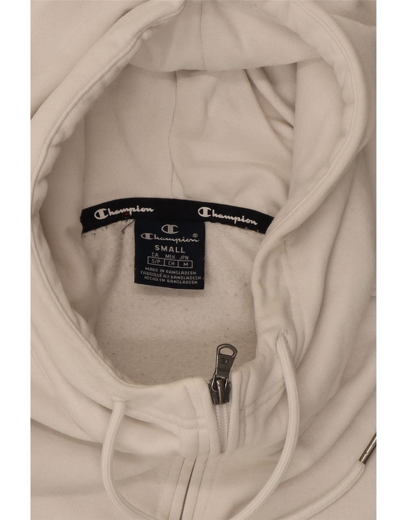 CHAMPION Womens Graphic Zip Neck Hoodie Jumper UK 10 Small White Cotton