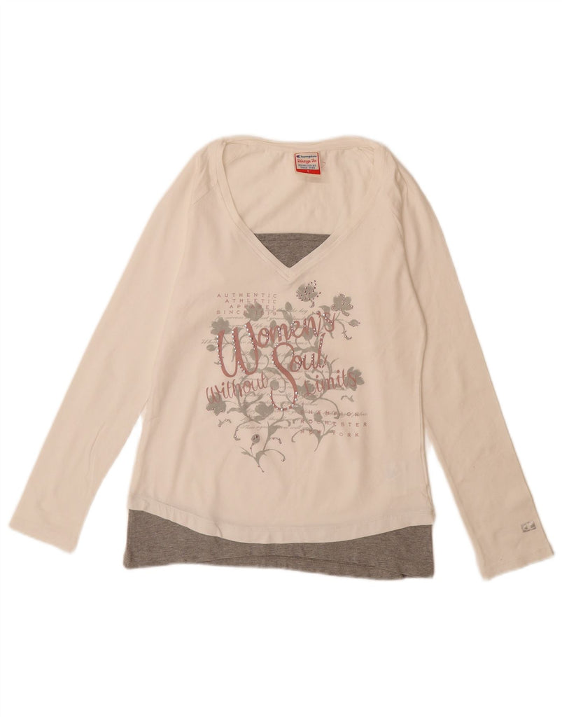 CHAMPION Womens Heritage Fit Graphic Top Long Sleeve UK 10 Small White