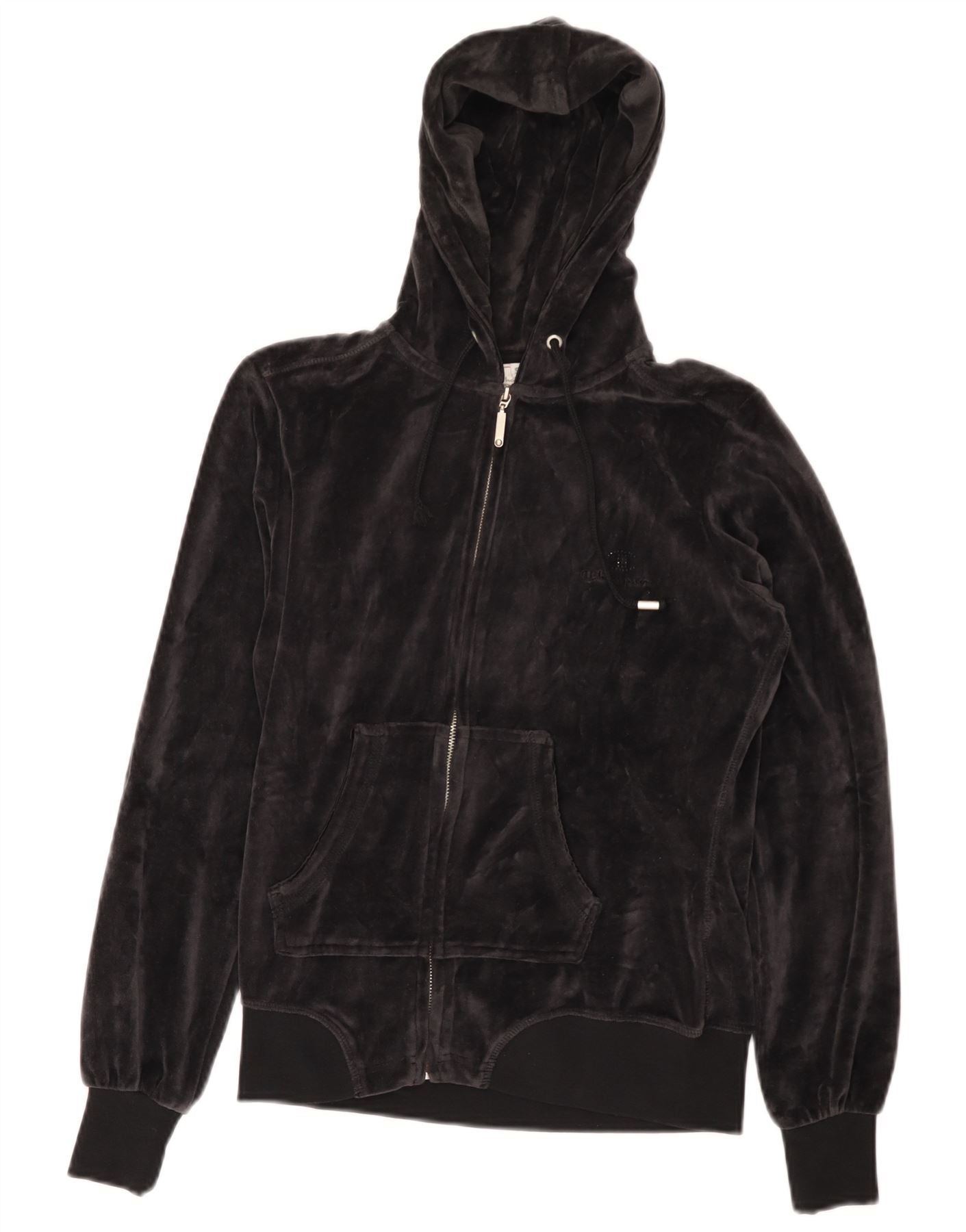 CHAMPION Womens Heritage Fit Velour Zip Hoodie Sweater UK 10 Small Black