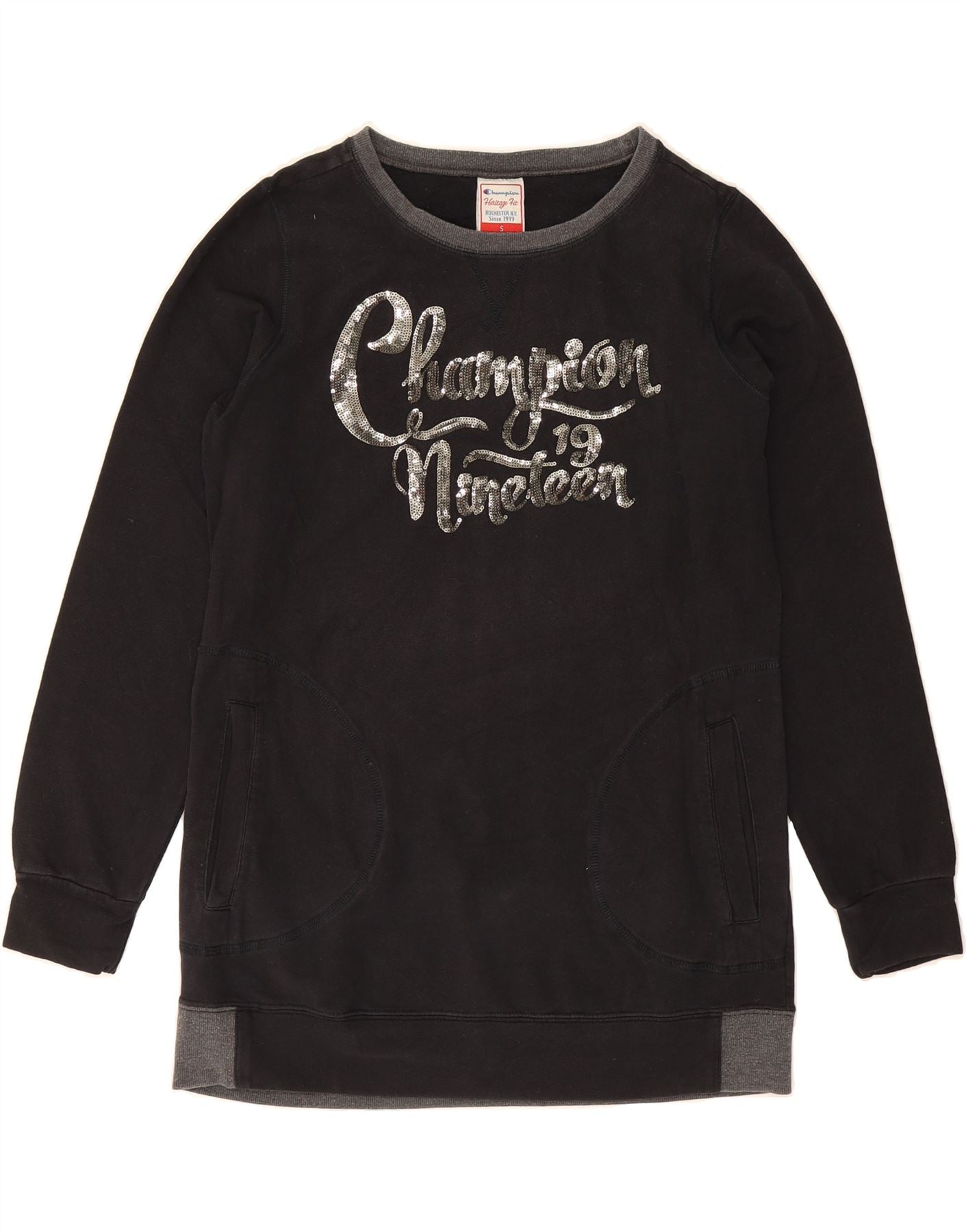 CHAMPION Womens Longline Graphic Sweatshirt Jumper UK 10 Small Black