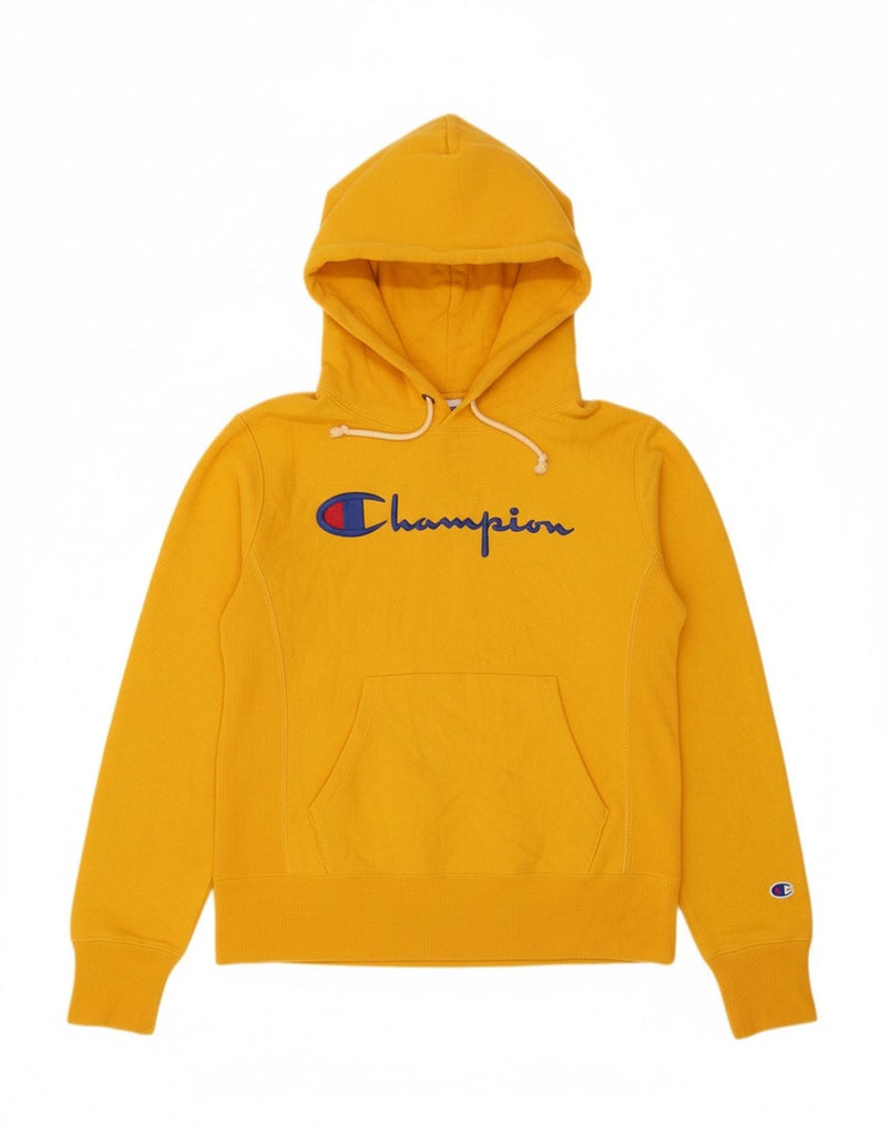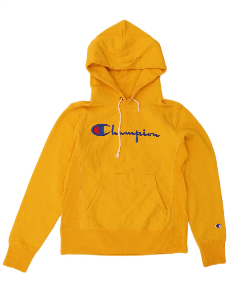 CHAMPION Womens Oversized Graphic Hoodie Jumper UK 10 Small Yellow Cotton