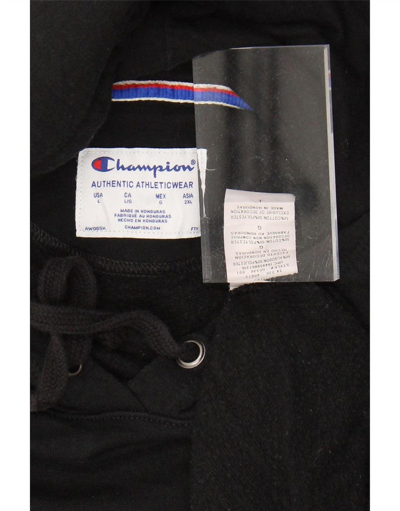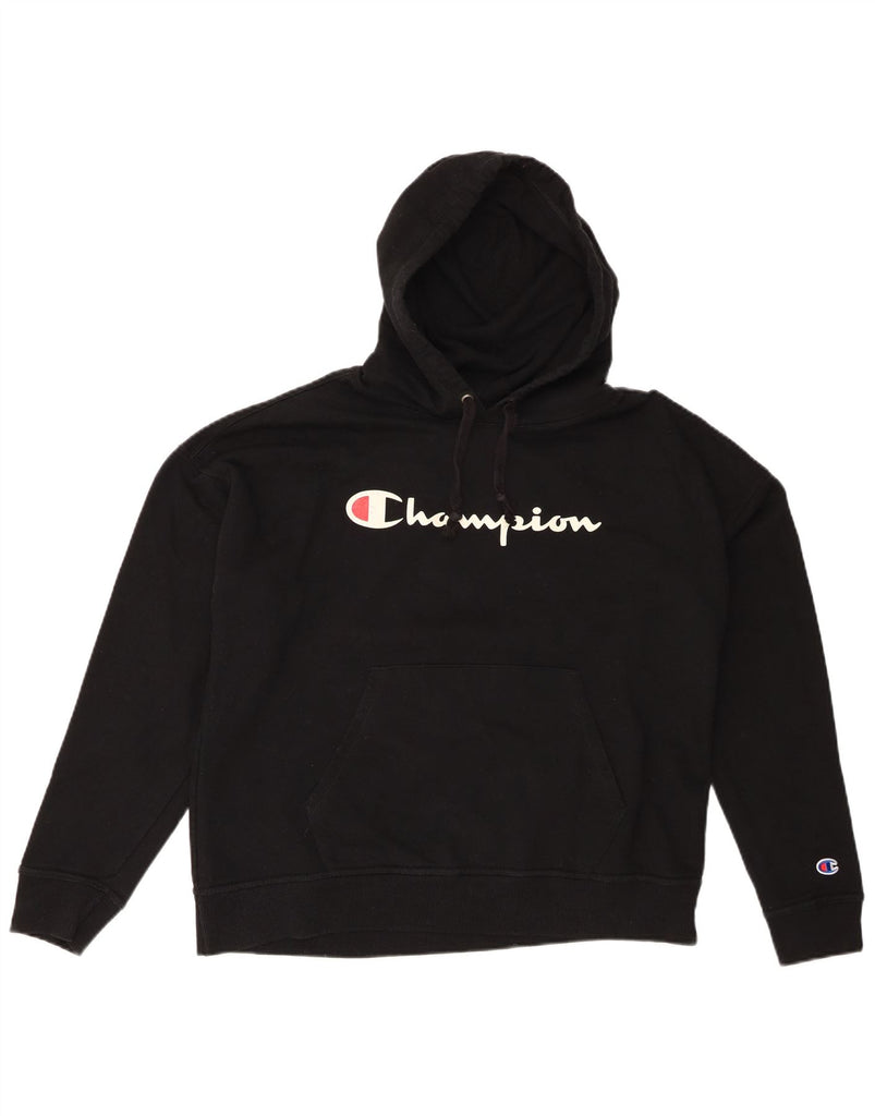 CHAMPION Womens Oversized Graphic Hoodie Jumper UK 16 Large Black Cotton