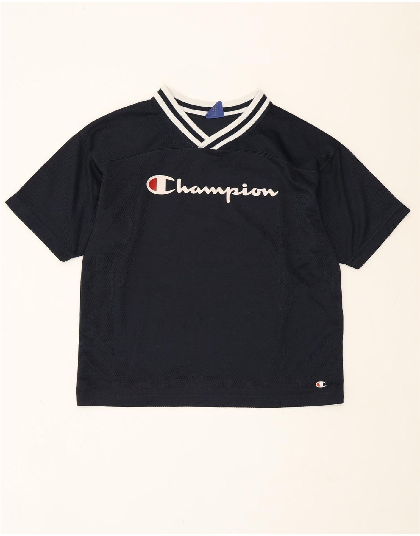 CHAMPION Womens Oversized Graphic T-Shirt Top UK 10 Small Navy Blue