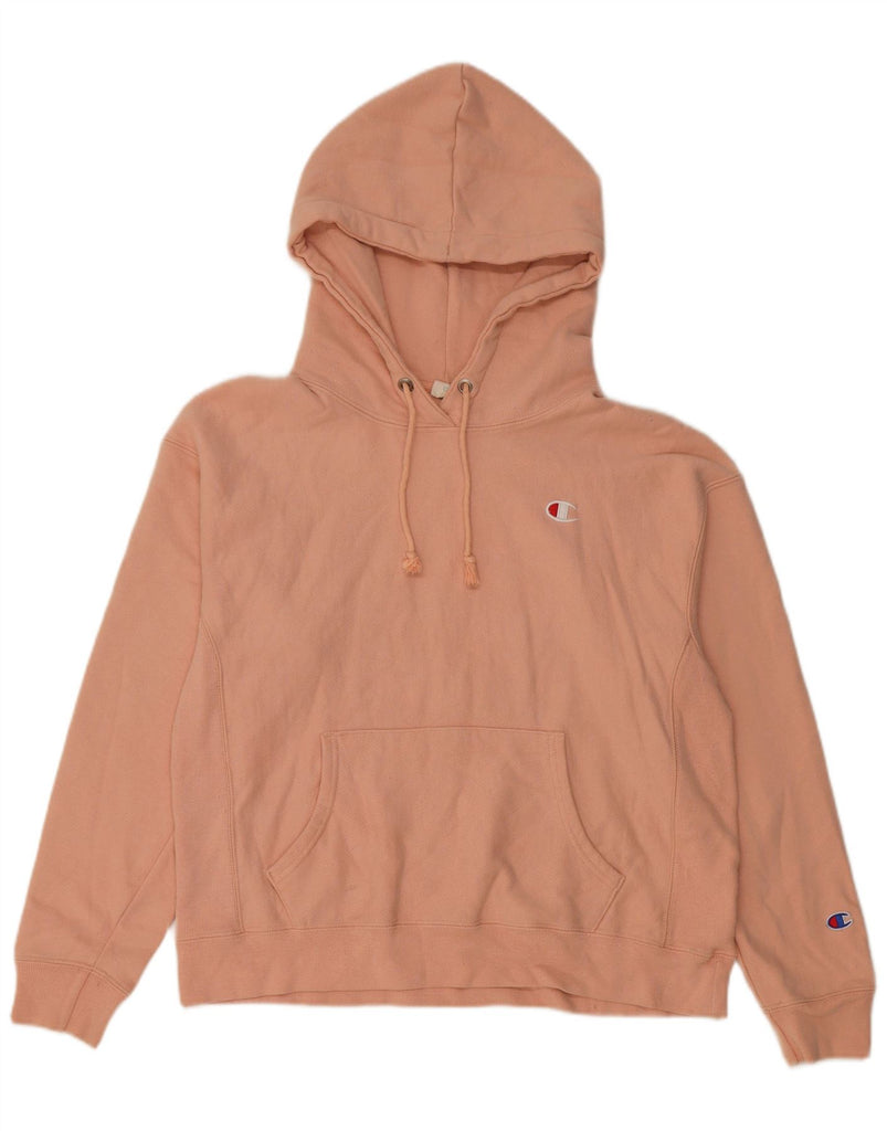 CHAMPION Womens Reverse Weave Hoodie Jumper UK 16 Large Pink Cotton