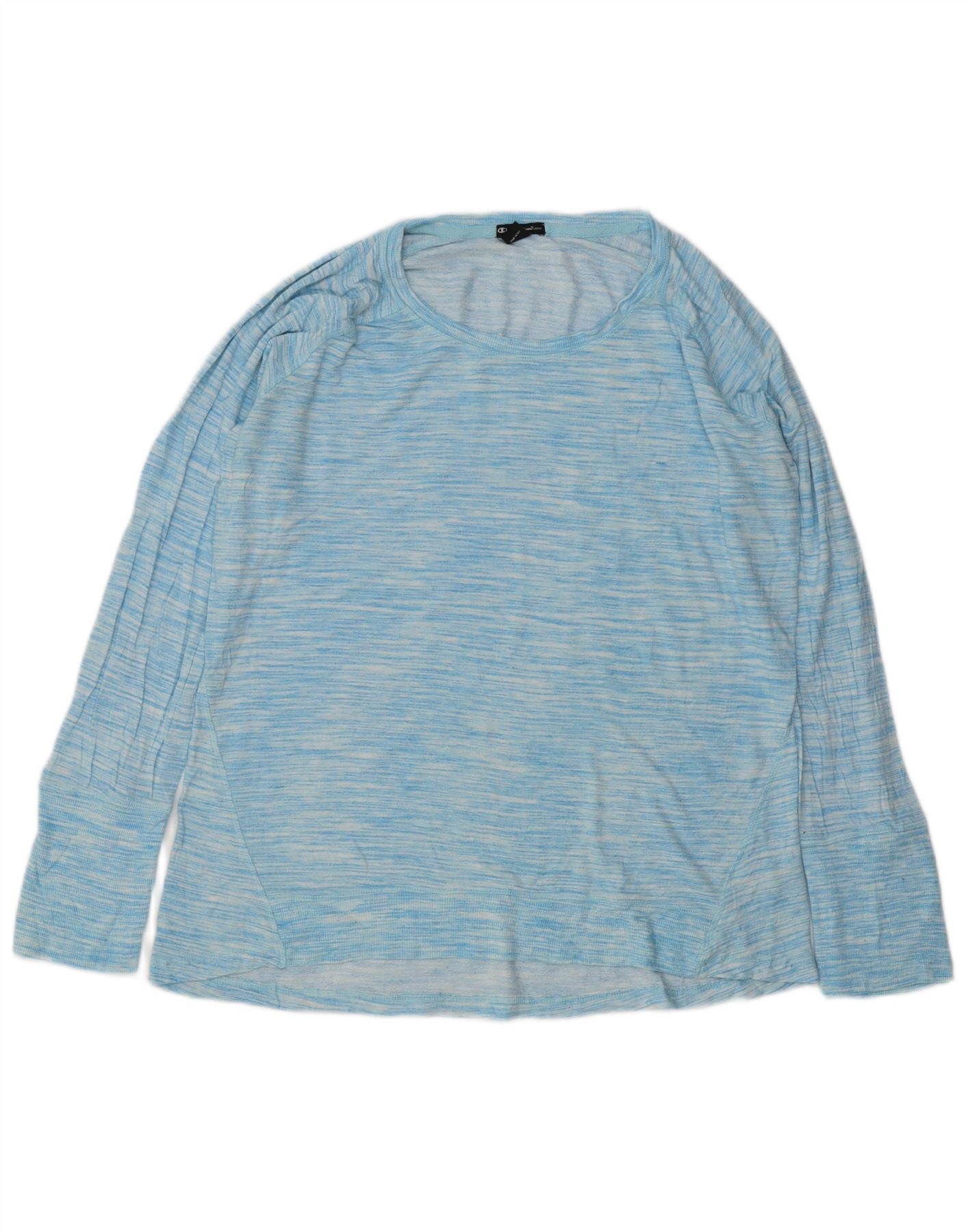 Champion Womens Top Long Sleeve UK 18 XL Blue Flecked Rayon
