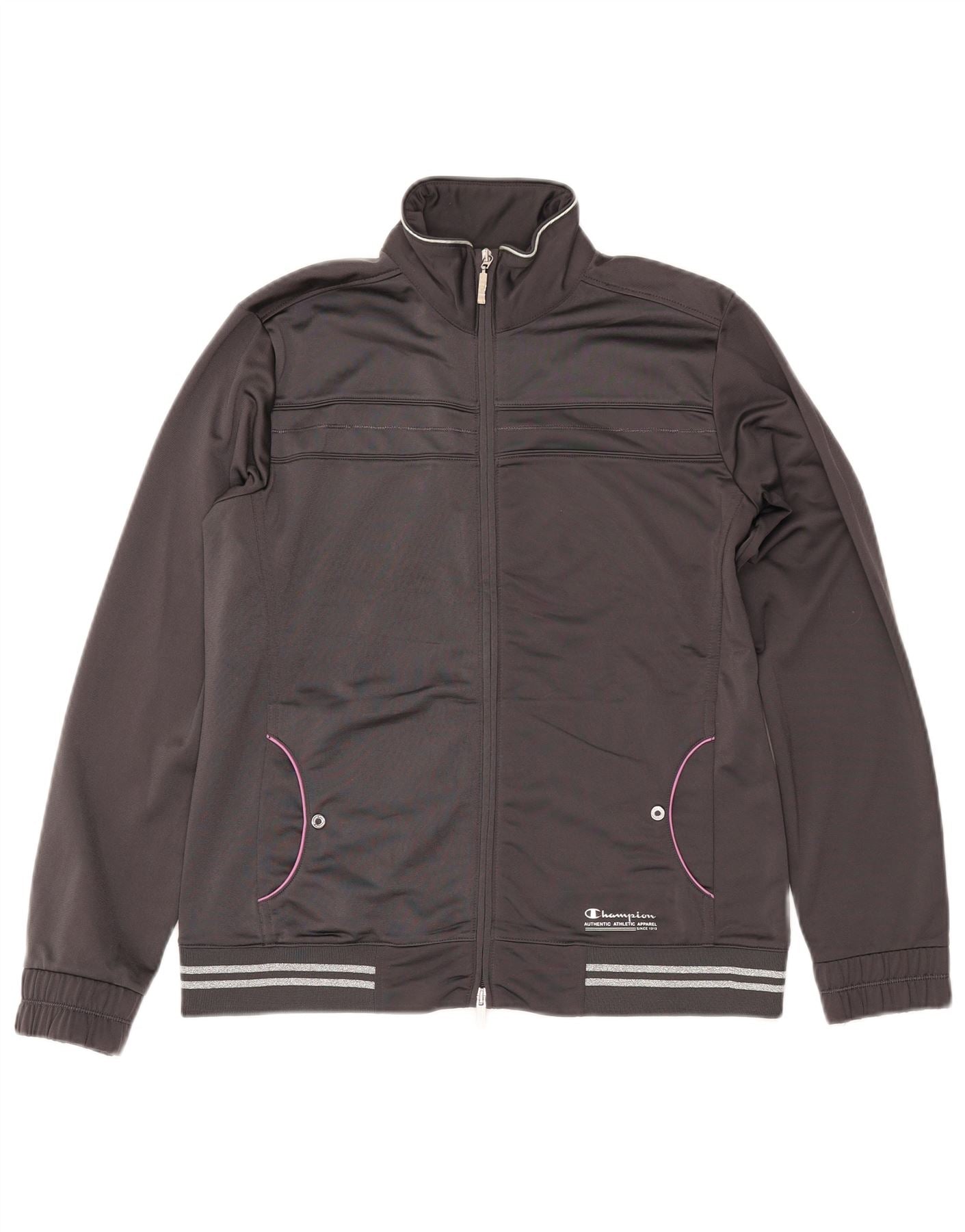 CHAMPION Womens Tracksuit Top Jacket UK 14 Medium Grey Polyester