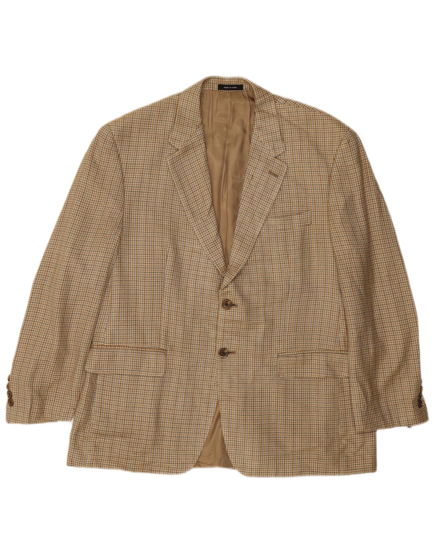 CHAPS Mens 2 Button Blazer Jacket UK 40 Large Beige Houndstooth