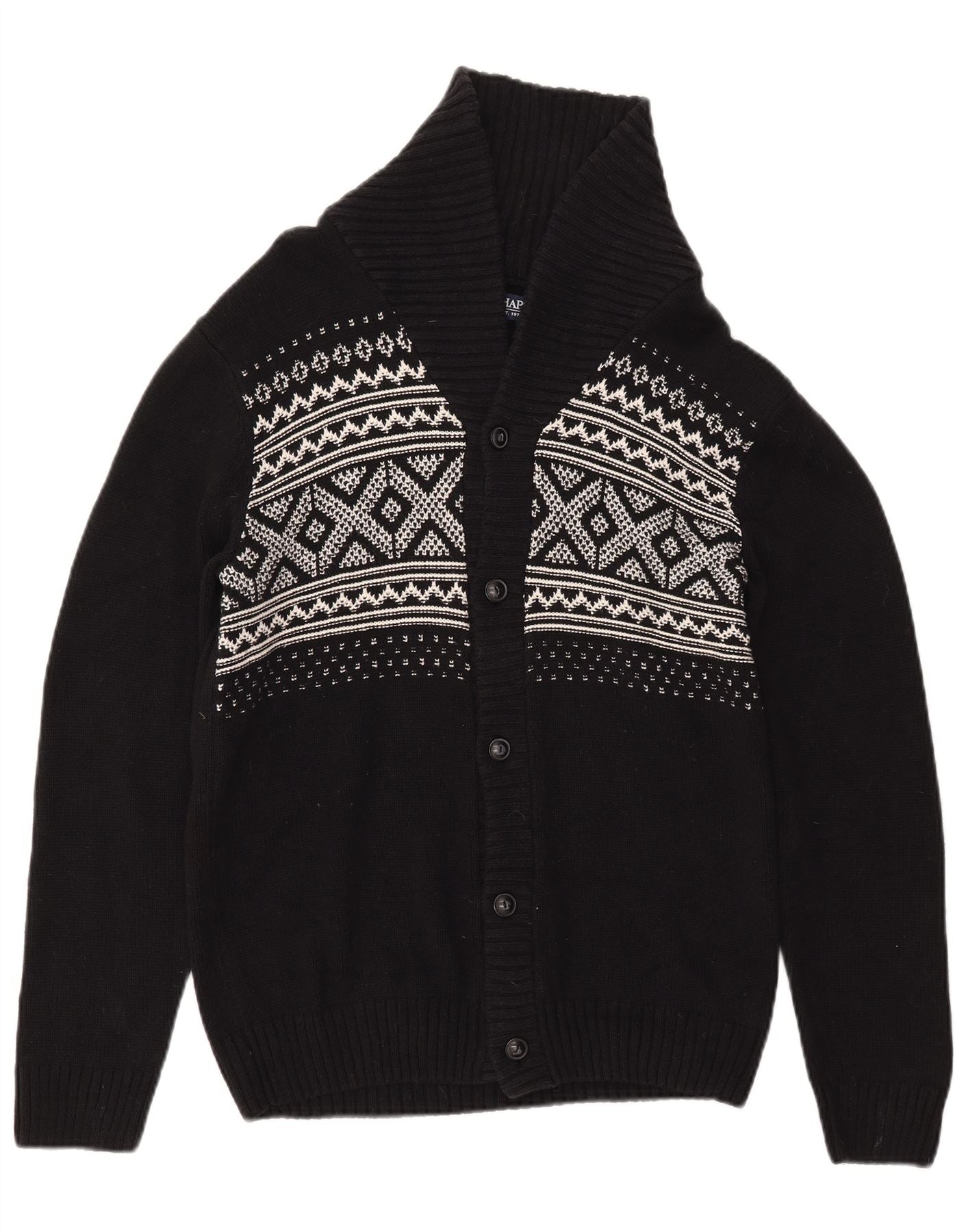 CHAPS Mens Cardigan Sweater Small Black Fair Isle Cotton