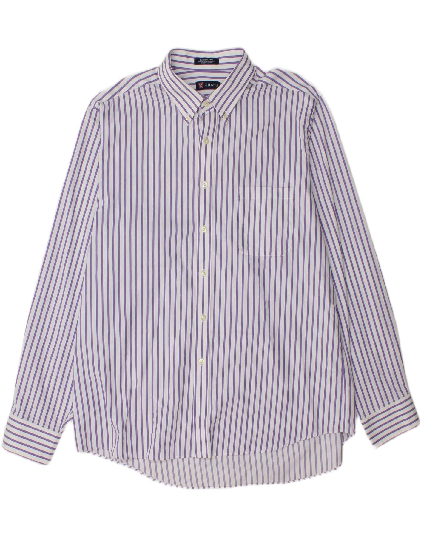 CHAPS Mens Classic Fit Shirt Size 17 17 1/2 XL Purple Striped Cotton