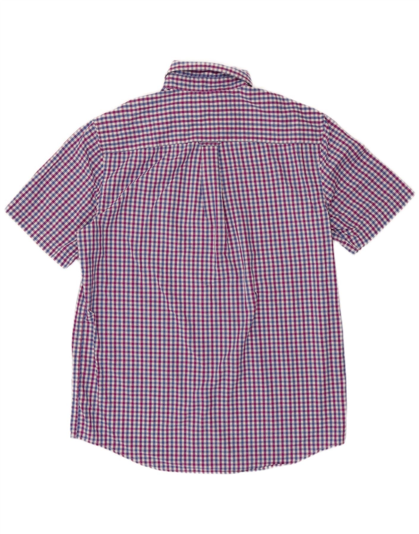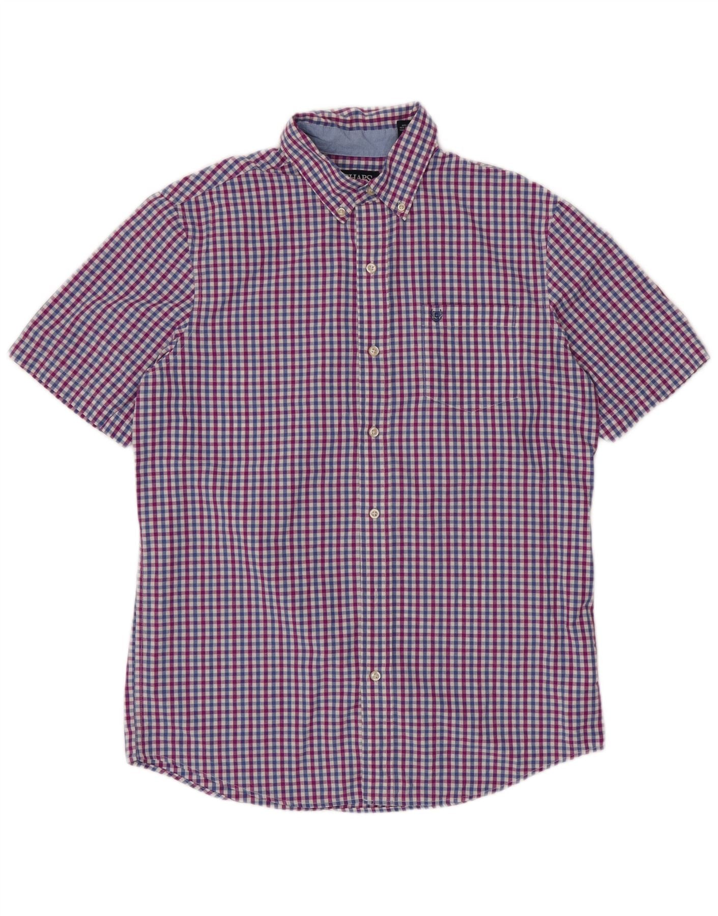 CHAPS Mens Easy Care Short Sleeve Shirt Medium Blue Gingham Cotton