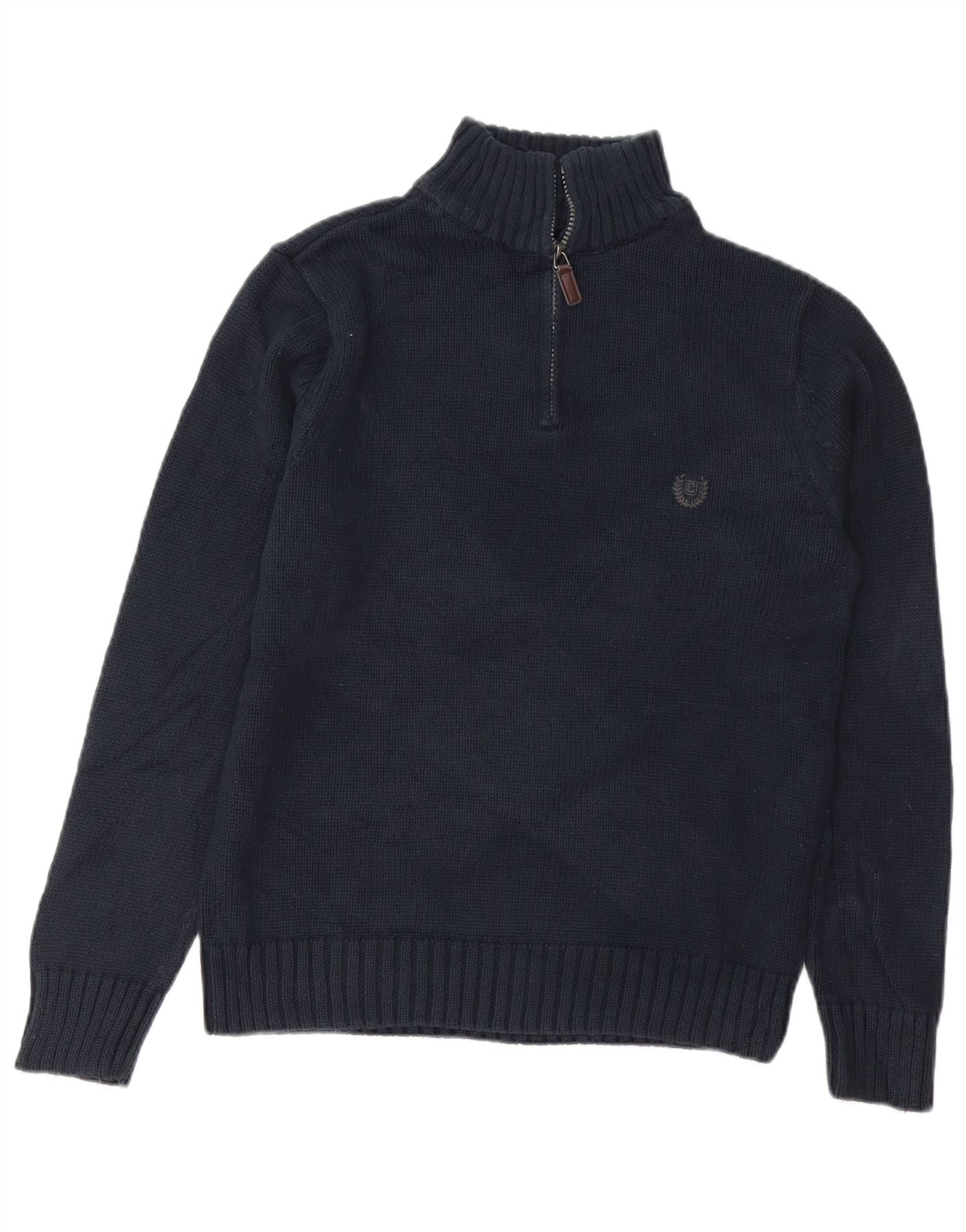 CHAPS Mens Zip Neck Jumper Sweater Small Navy Blue Cotton