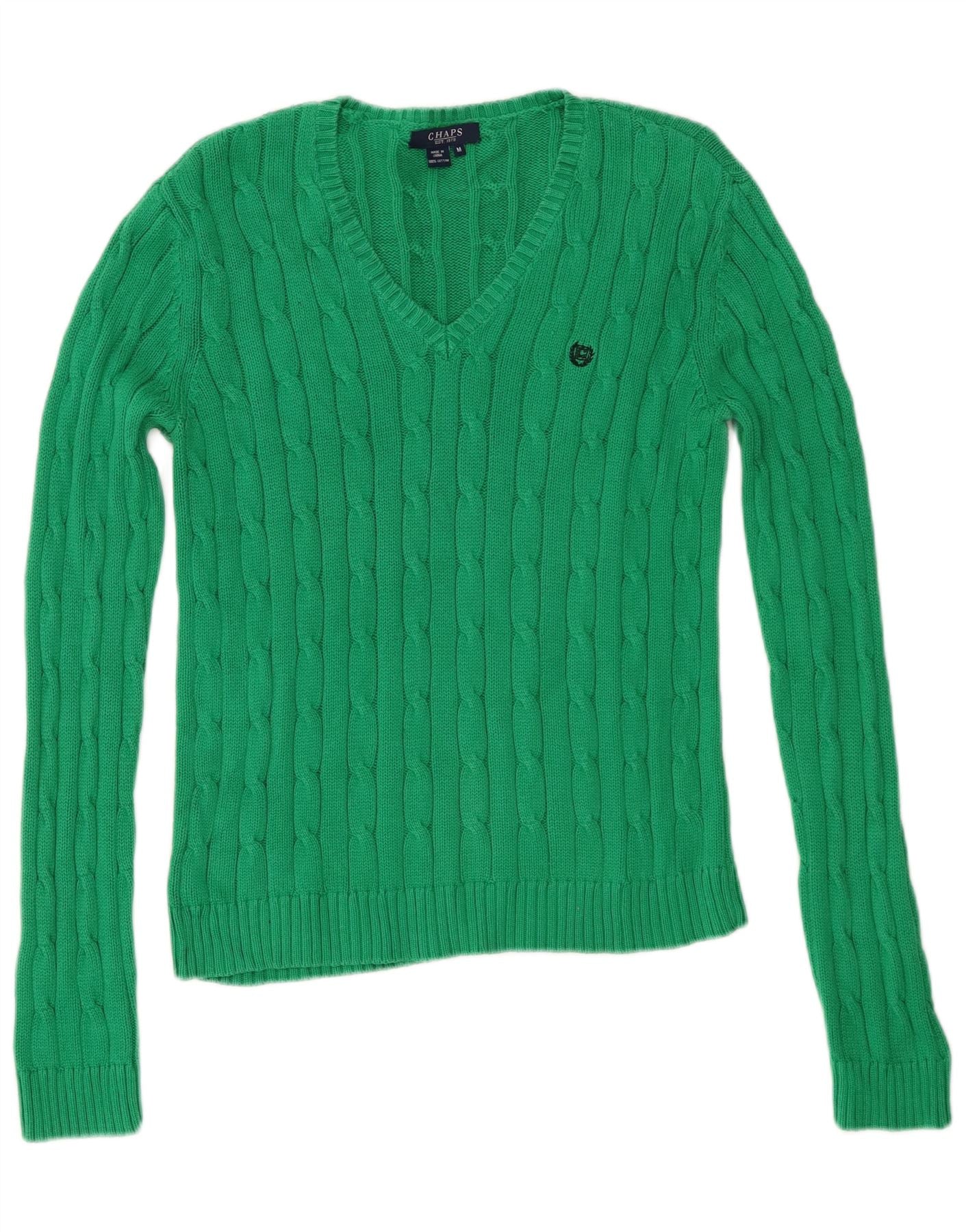 Chaps Womens V-Neck Jumper Sweater UK 12 Medium Green Cotton