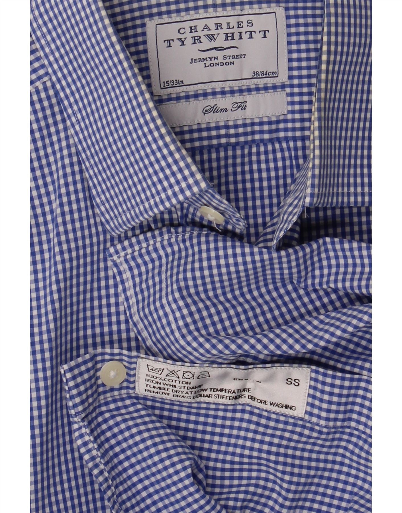 CHARLES TYRWHITT Mens Slim Fit Shirt Size 15 38 Medium Blue Gingham Cotton