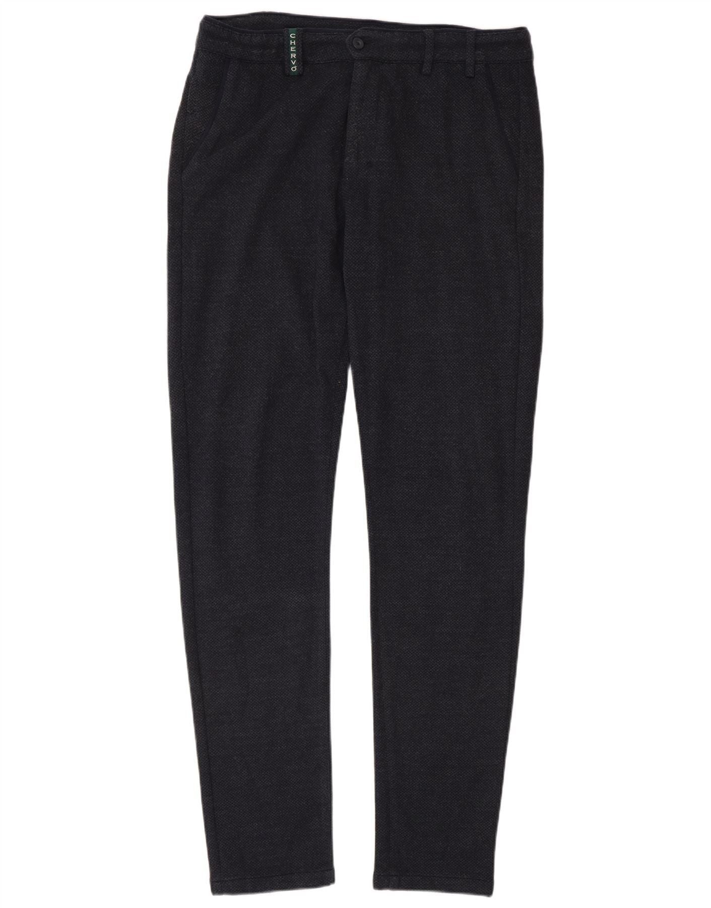 Chervo Mens Slim Chino Trousers IT 50 Large W32 L34 Navy Blue Cotton