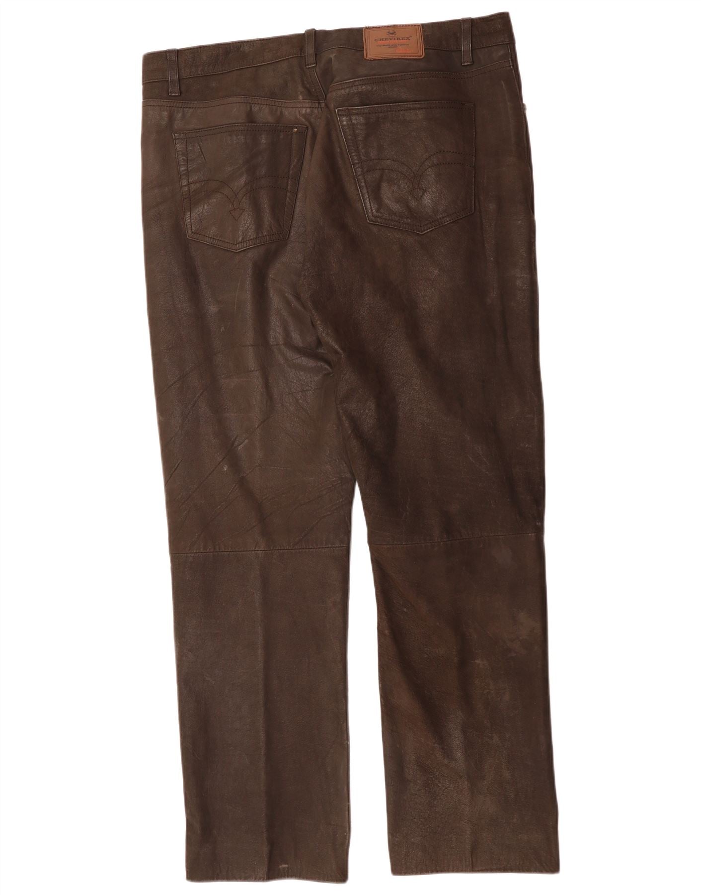 CHEVIREX Mens Straight Leather Trousers W40 L33 Brown Leather