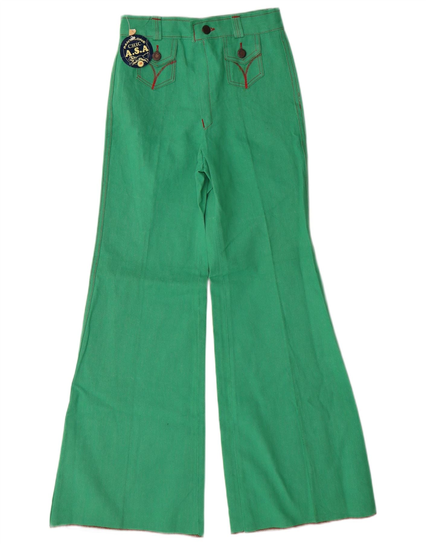 Chic Womens Flare Casual Trousers IT 40 Small W24 L28 Green