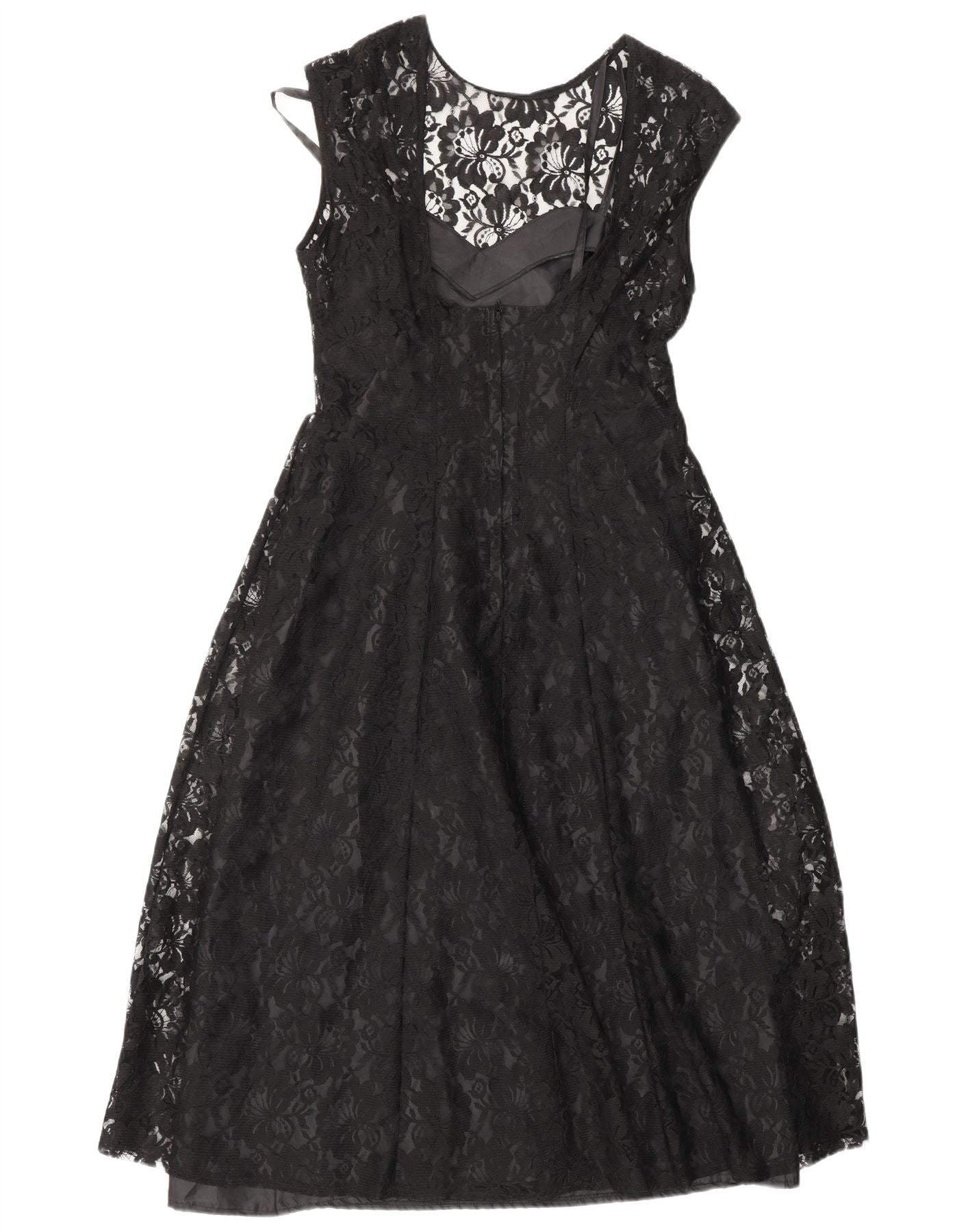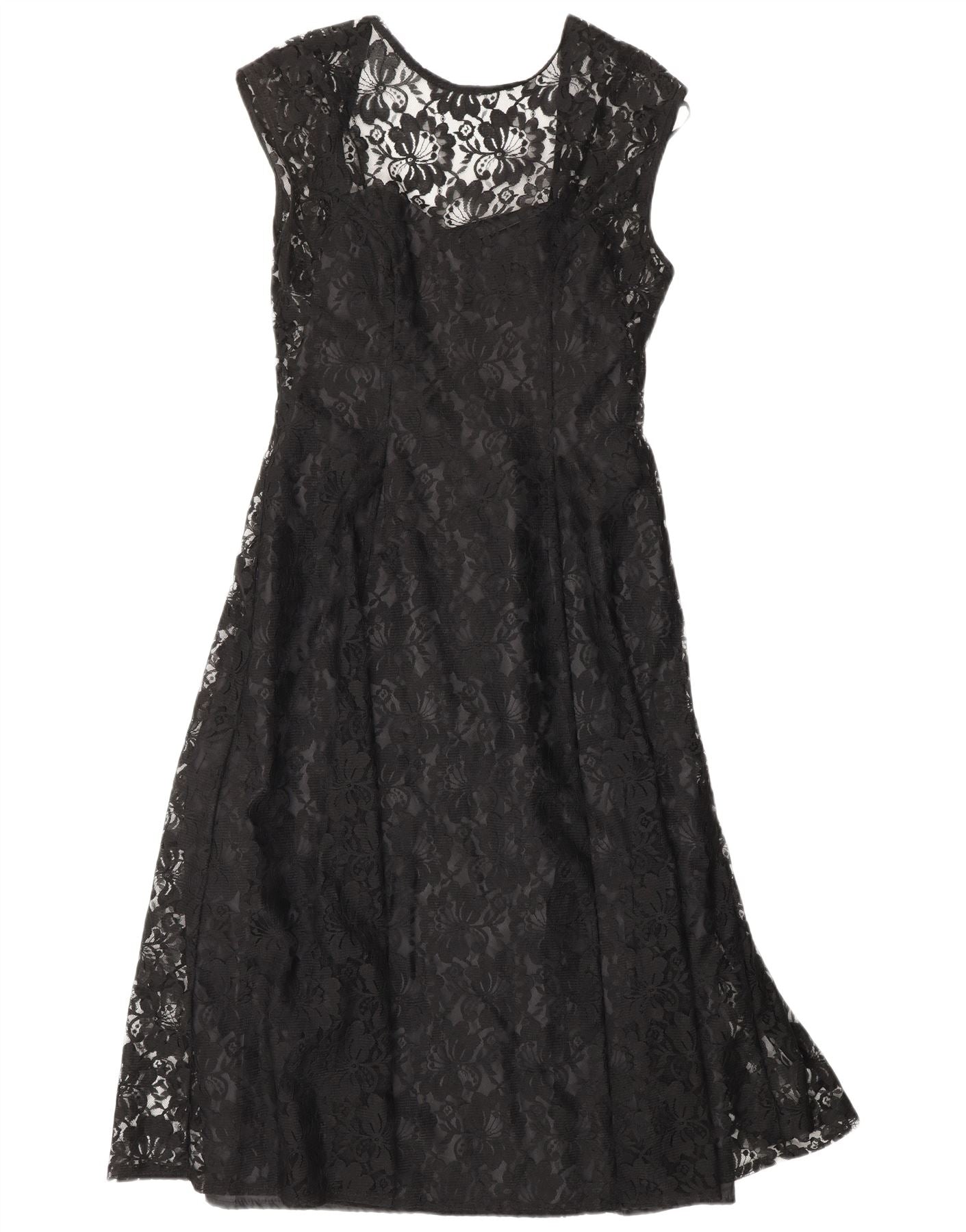 CLASSIC Womens A-Line Dress UK 12 Medium Black Floral Nylon