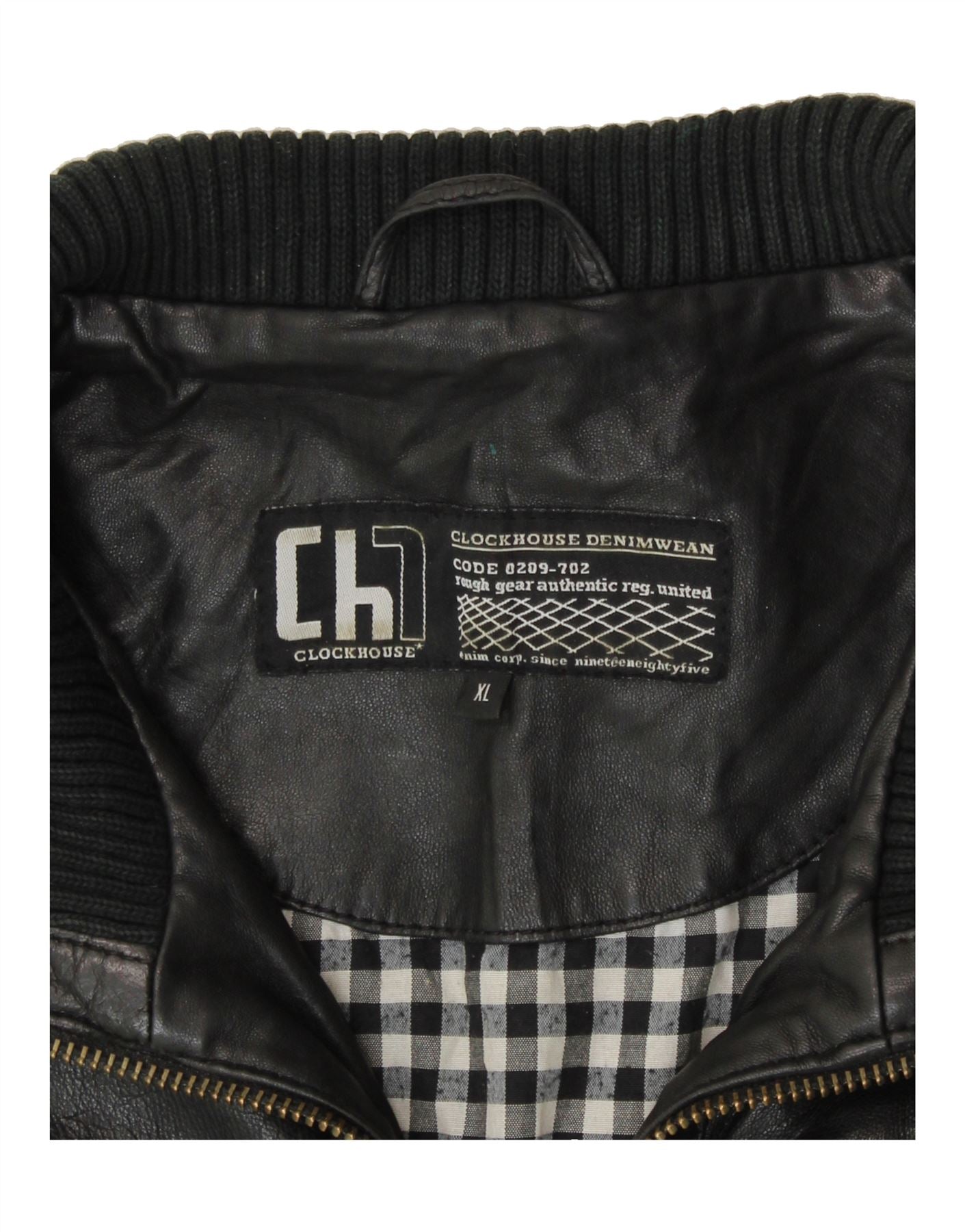 CLOCK HOUSE Mens Leather Jacket UK 42 XL Black Leather